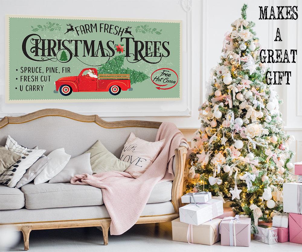 Farm Fresh Christmas Trees - Large Canvas Wall Art - Stretched on a Heavy Wood Frame - Ready to Hang - Above a Couch and Headboard Decor-Great Christmas Decor and Gift