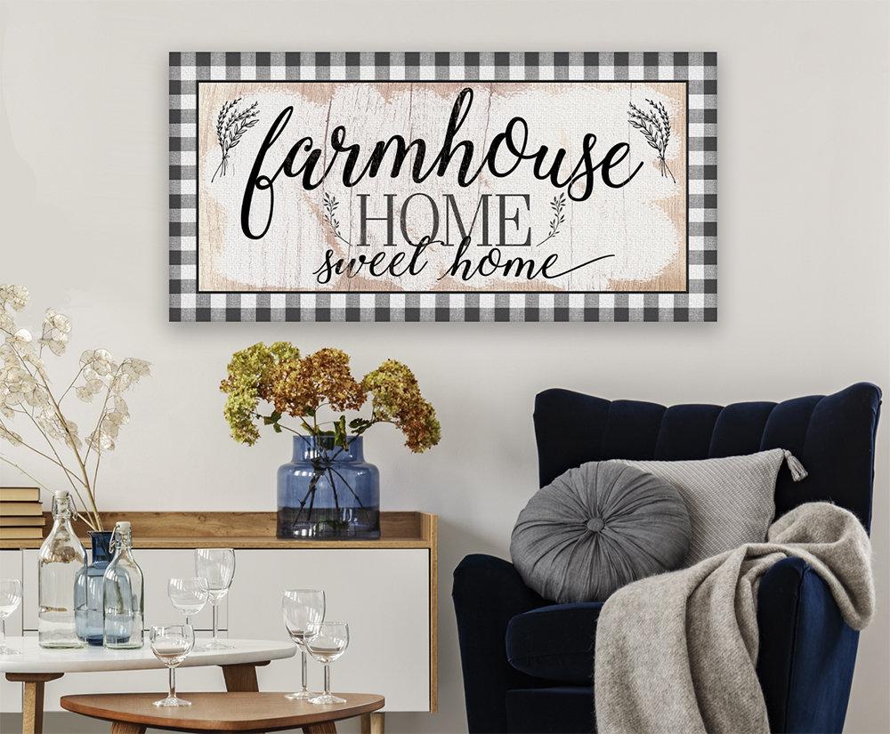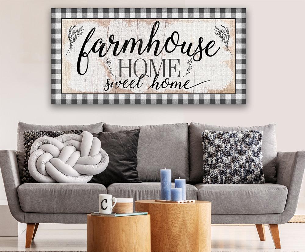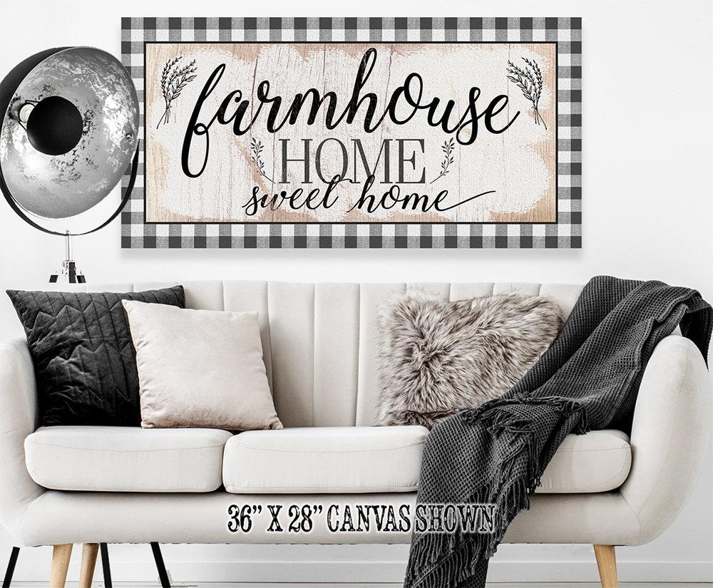Farmhouse Home Sweet Home - Large Canvas Wall Art (Not Printed on Wood)-Stretched on a Heavy Wood Frame - Perfect for Above a Couch or Living Room - Great Wedding and Housewarming Gift
