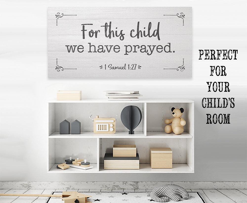 For This Child We Have Prayed - Large Canvas (Not Printed on Wood)-Stretched on a Heavy Wood Frame-Nursery Decor-Baby Shower Gift
