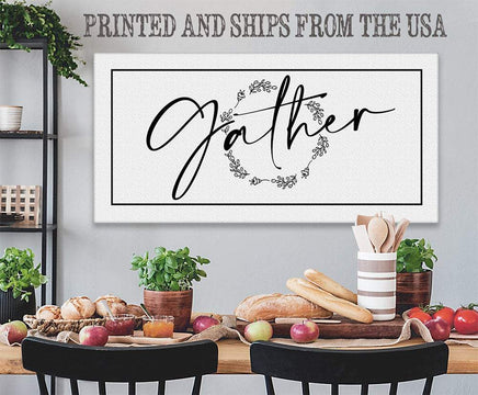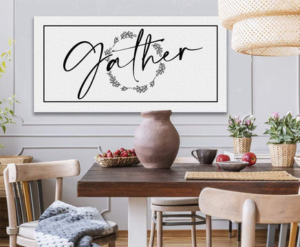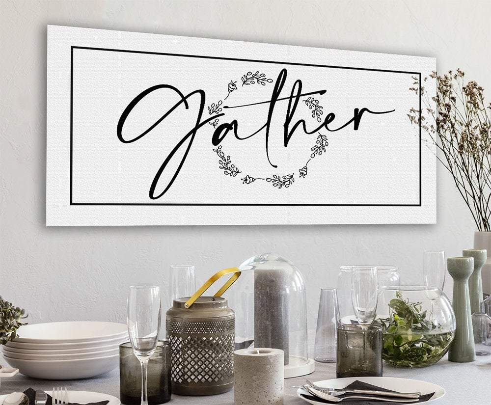 Gather-Large Black and White Canvas-Stretched on a Heavy Wood Frame-Above a Couch Dining Room Decor-Housewarming Anniversary Wedding Gift