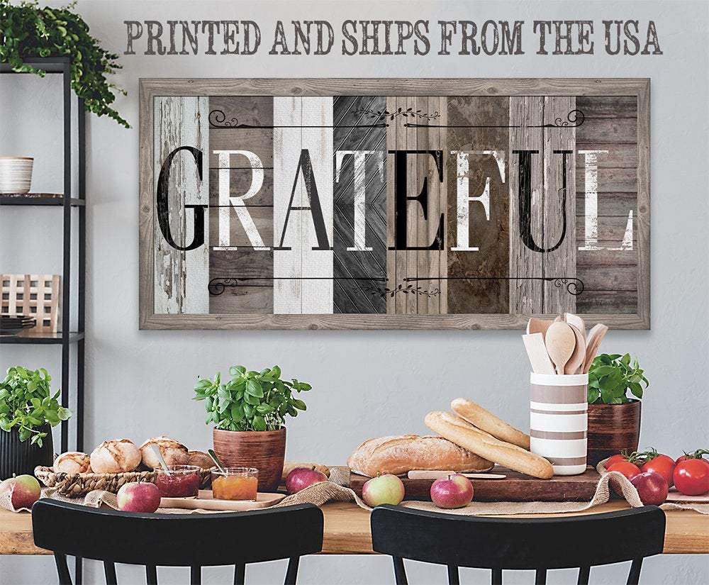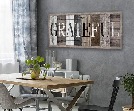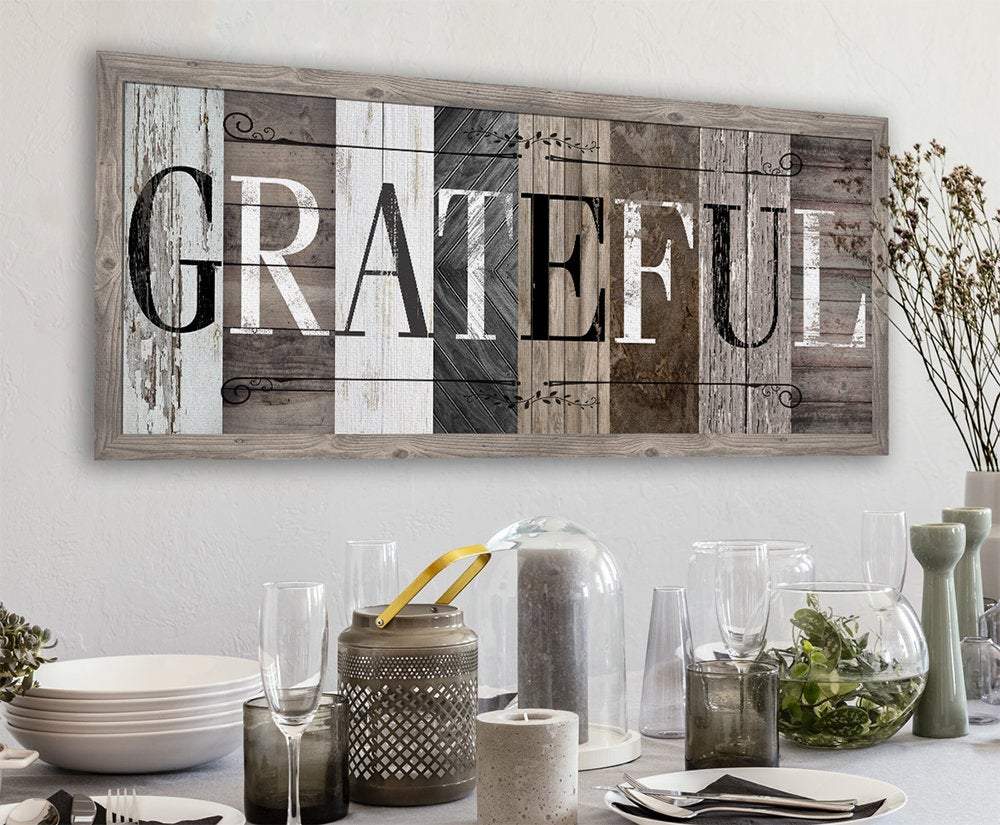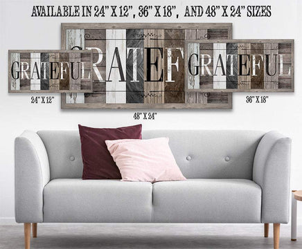 Grateful in Multi Pattern - Large Canvas Wall Art (Not Printed on Wood) - Stretched on a Heavy Wood Frame - Perfect Above a Couch or Dining Room Decor-Great Housewarming & Wedding Gift