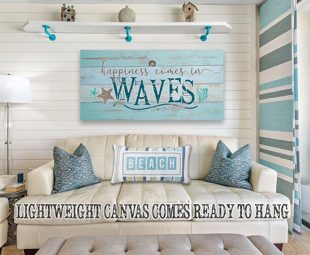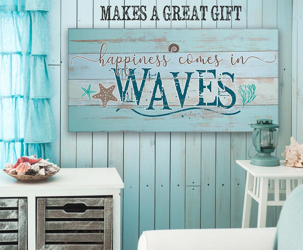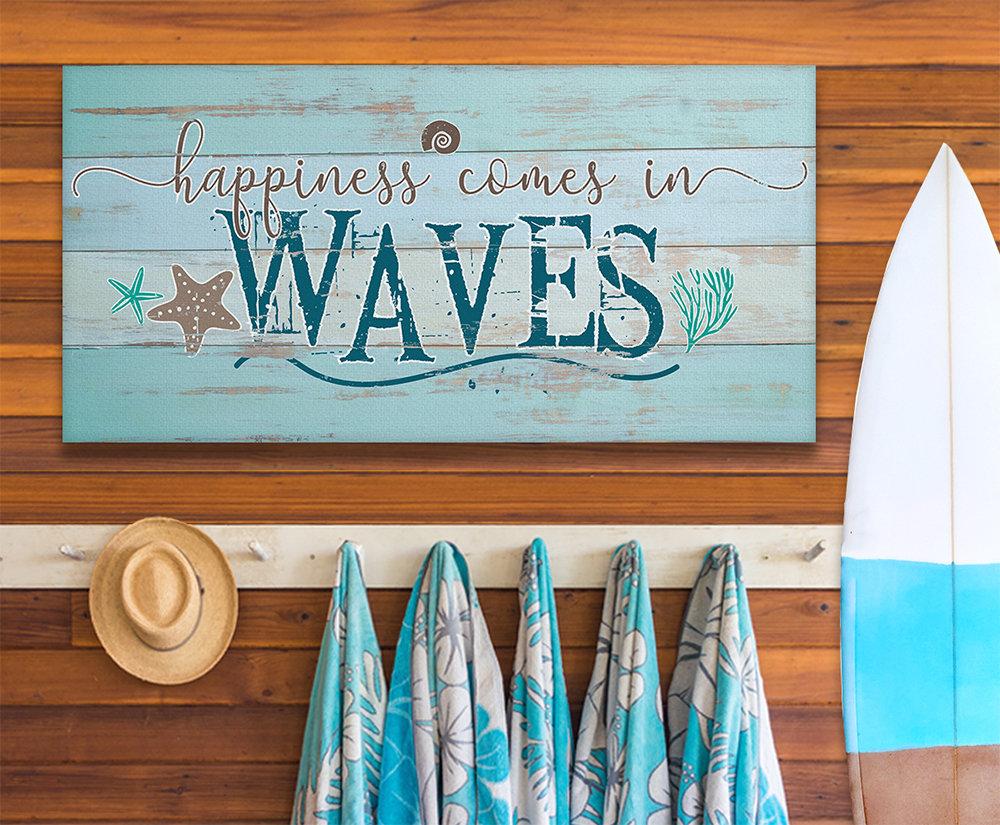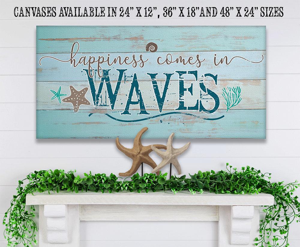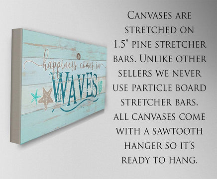 Happiness Comes In Waves-Large Canvas Wall Art(Not Printed on Wood) - Stretched on a Wood Frame