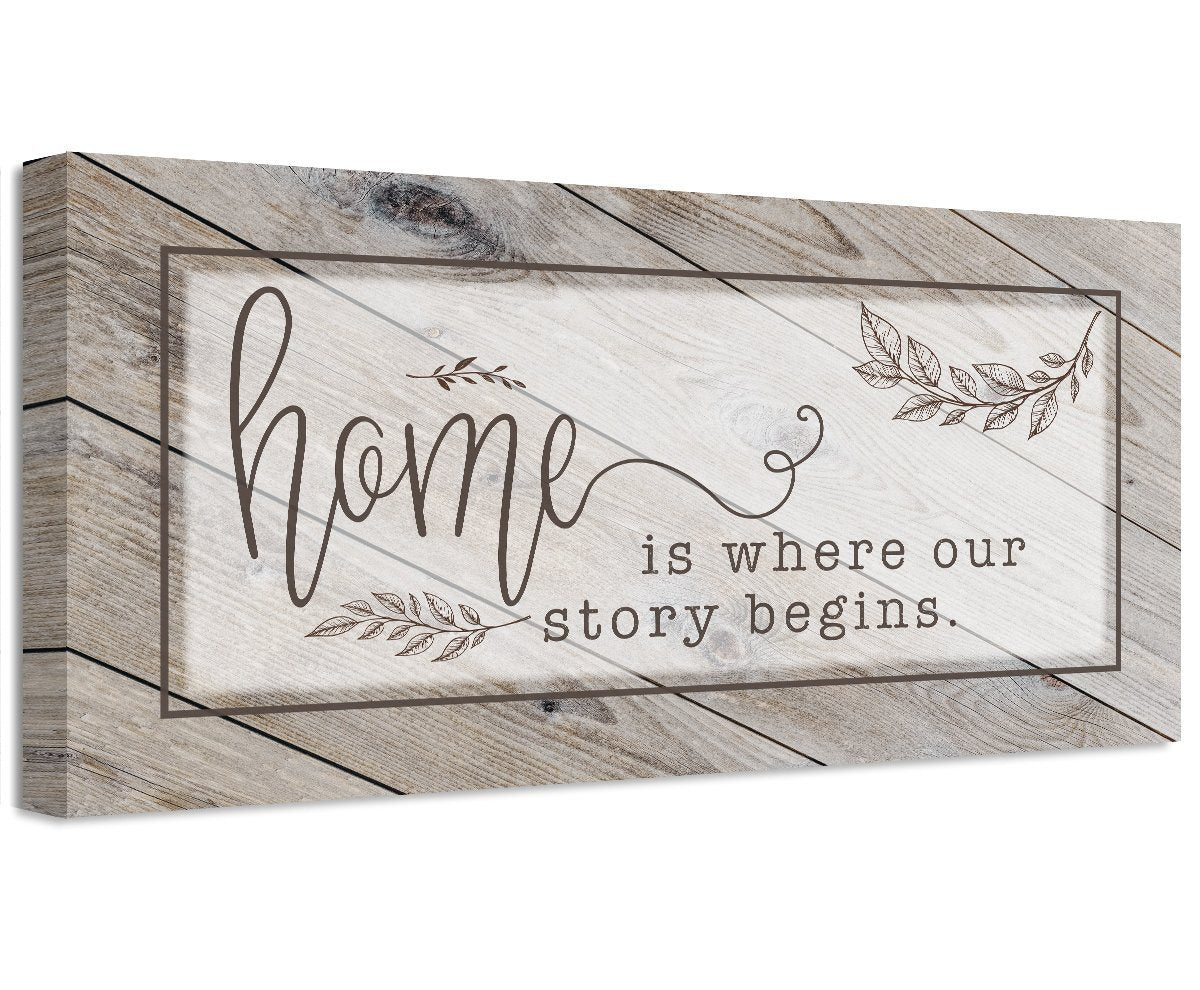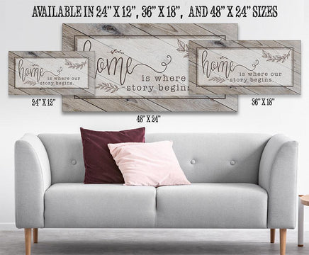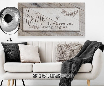 Home Is Where Our Story Begins - Large Canvas (Not Printed on Wood) - Stretched on Wood-Perfect Above a Couch-Housewarming and Wedding Gift