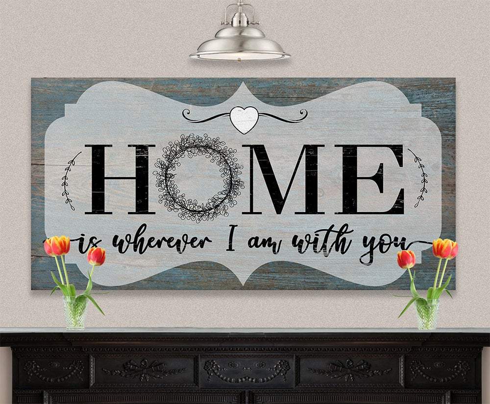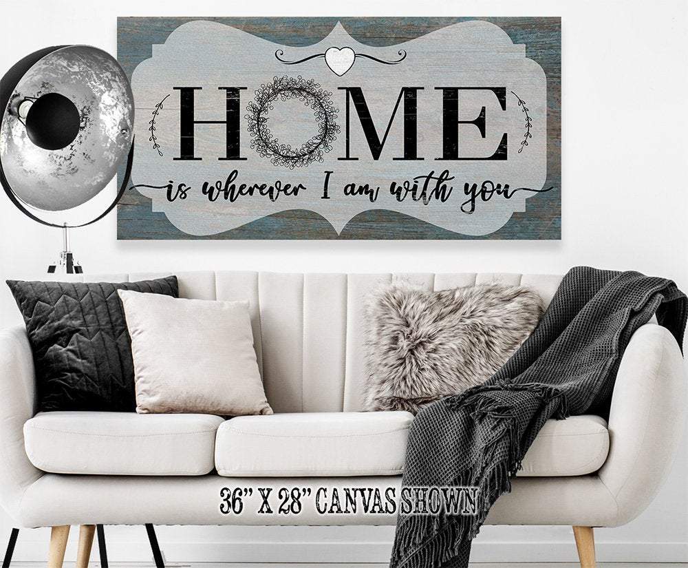 Home Is Wherever I Am With You-Large Canvas(Not Printed on Wood)-Stretched on Wood Frame-Couch Living Room Decor-Housewarming Wedding Gift