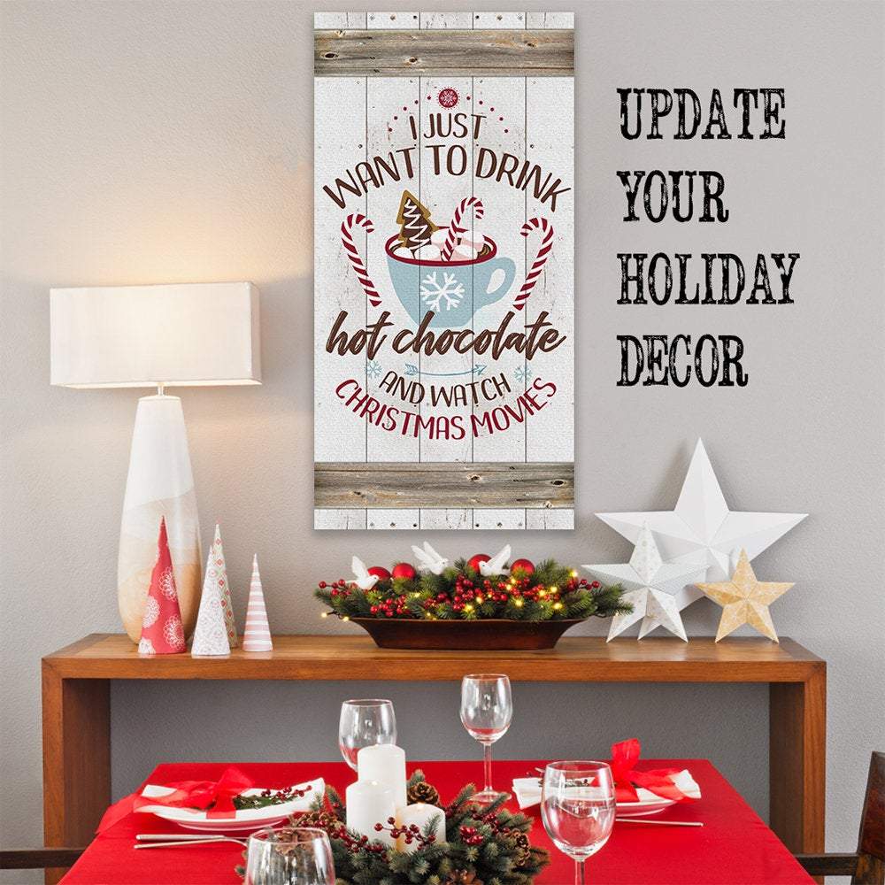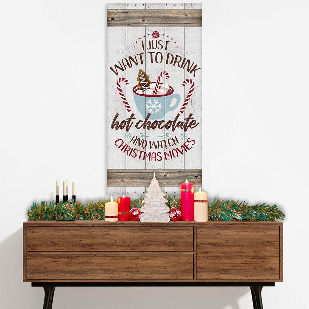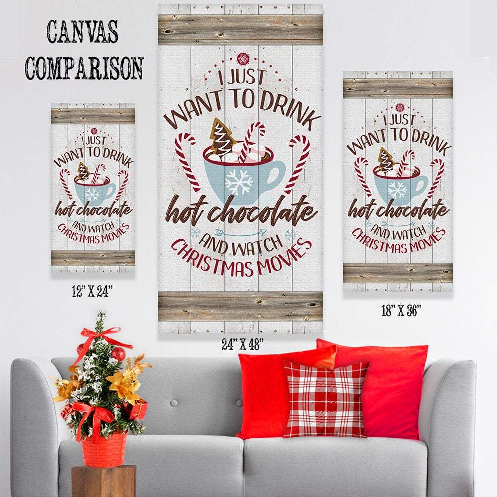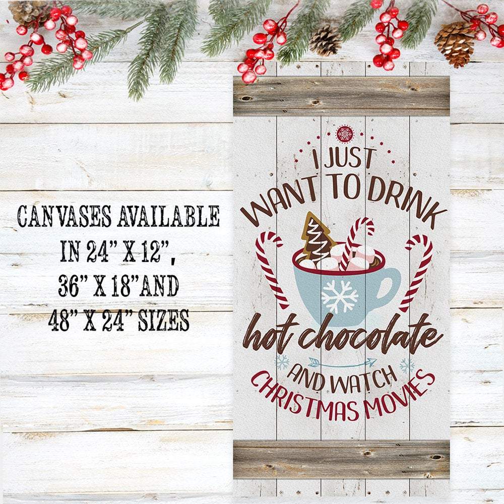 I Just Want To Drink Hot Chocolate - Large Canvas Wall Art (Not Printed on Wood) - Stretched on a Heavy Wood Frame - Ready to Hang - Makes a Great Christmas Gift and Decor Under $50