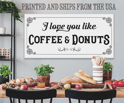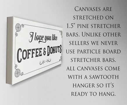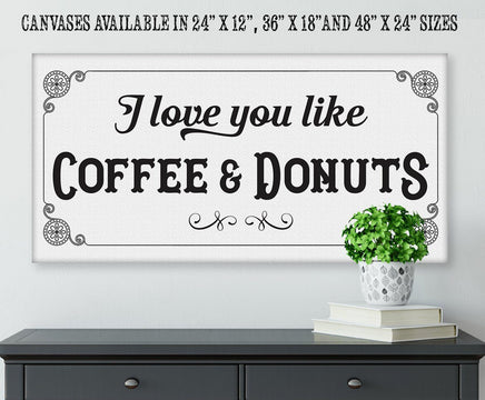 I Love You Like Coffee & Donuts-Large Canvas Wall Art-Stretched on a Heavy Wood Frame-Kitchen Dining Room Decor-Housewarming Wedding Gift