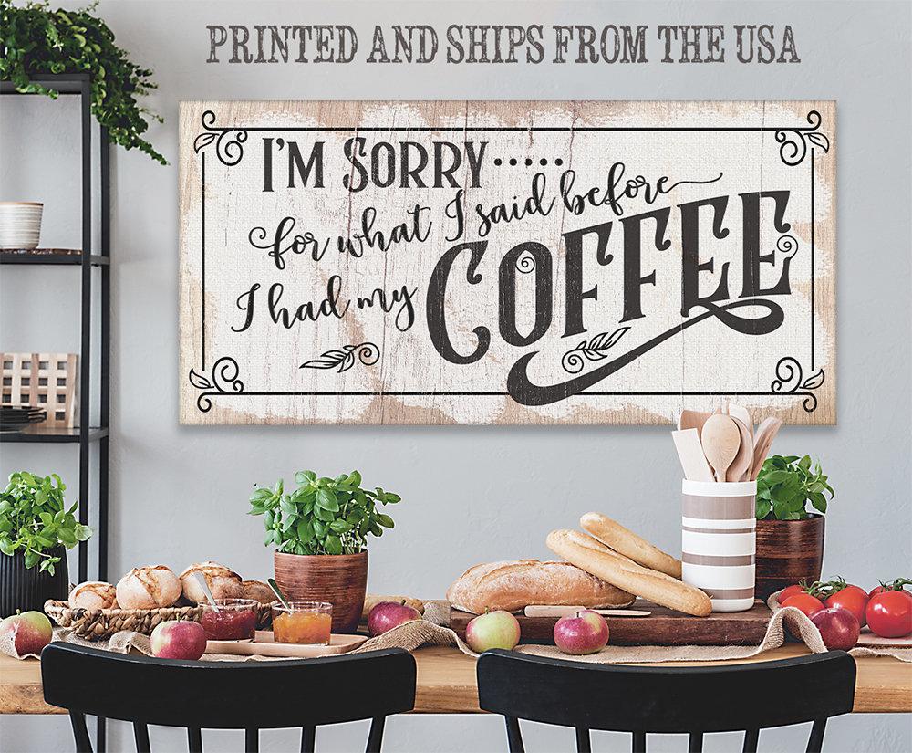 I'm Sorry Coffee-Large Canvas Wall Art(Not Printed on Wood) - Stretched on a Wood Frame