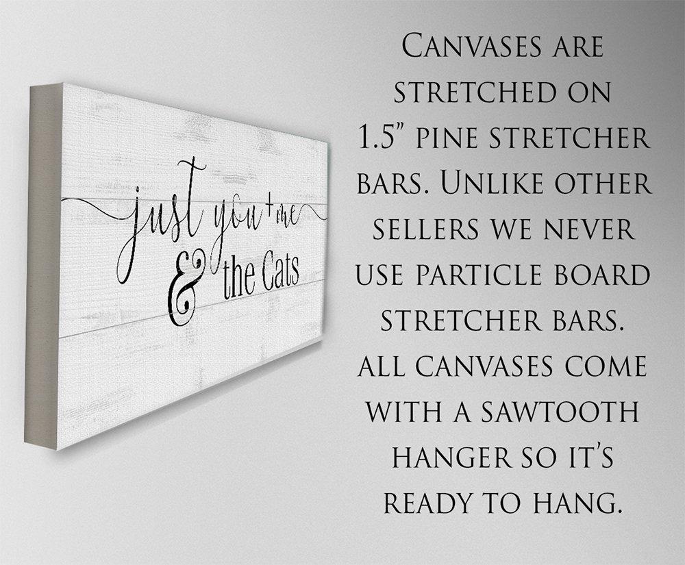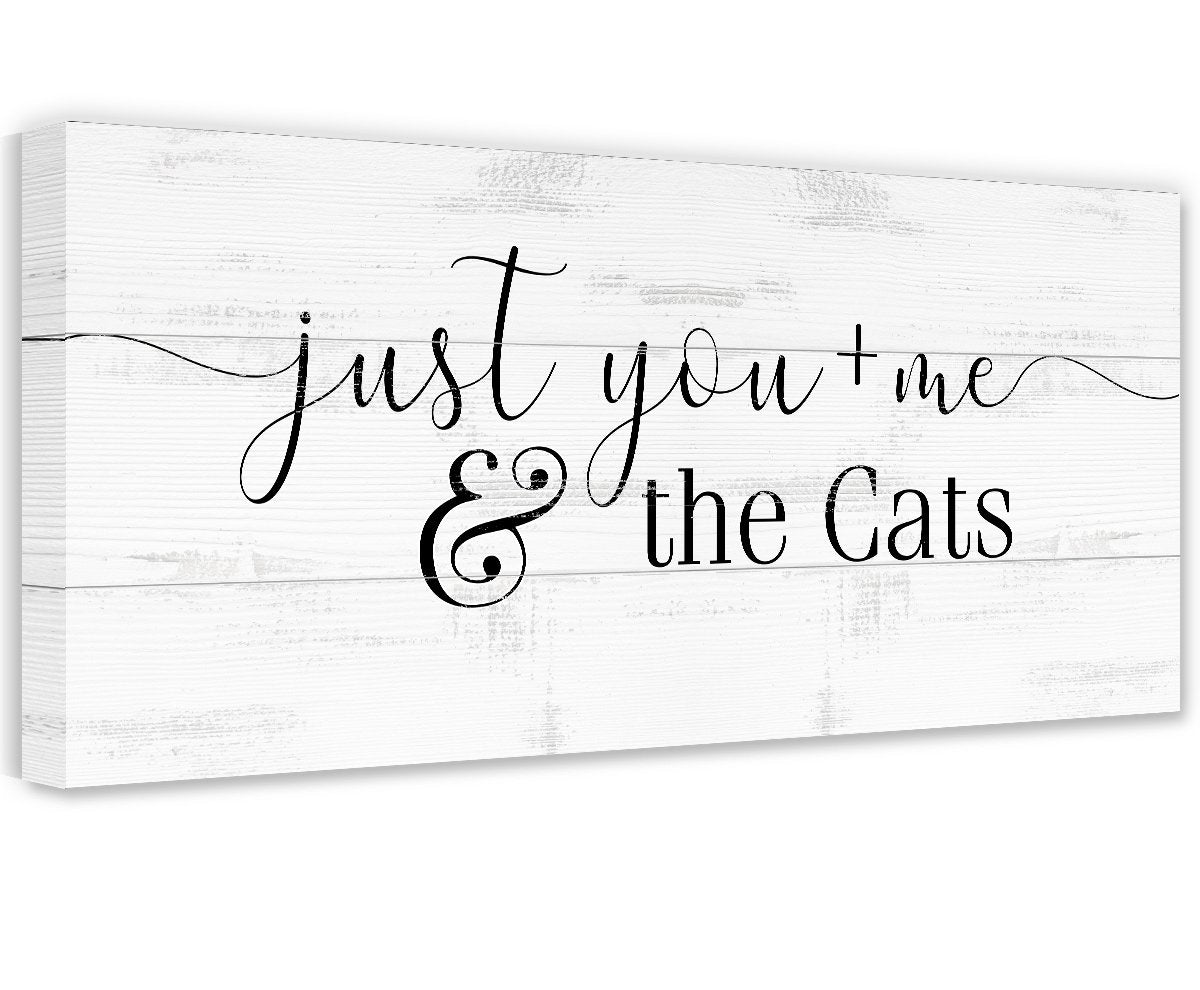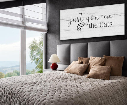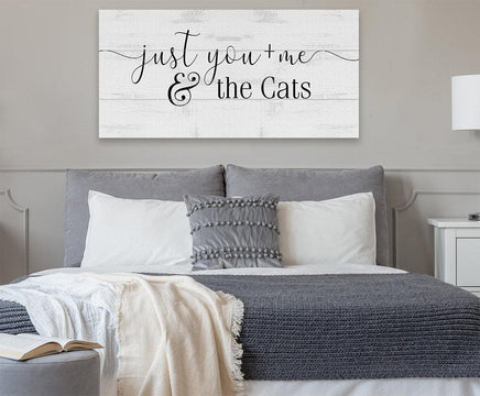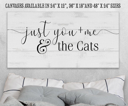 Just You and Me and The Cats - Large Canvas (Not Printed on Wood) - Stretched on a Heavy Wood Frame - Ready to Hang - Perfect Above a Couch and Headboard Decor -Housewarming and Wedding Gift