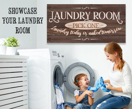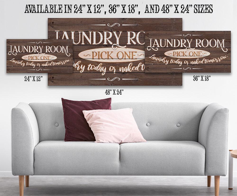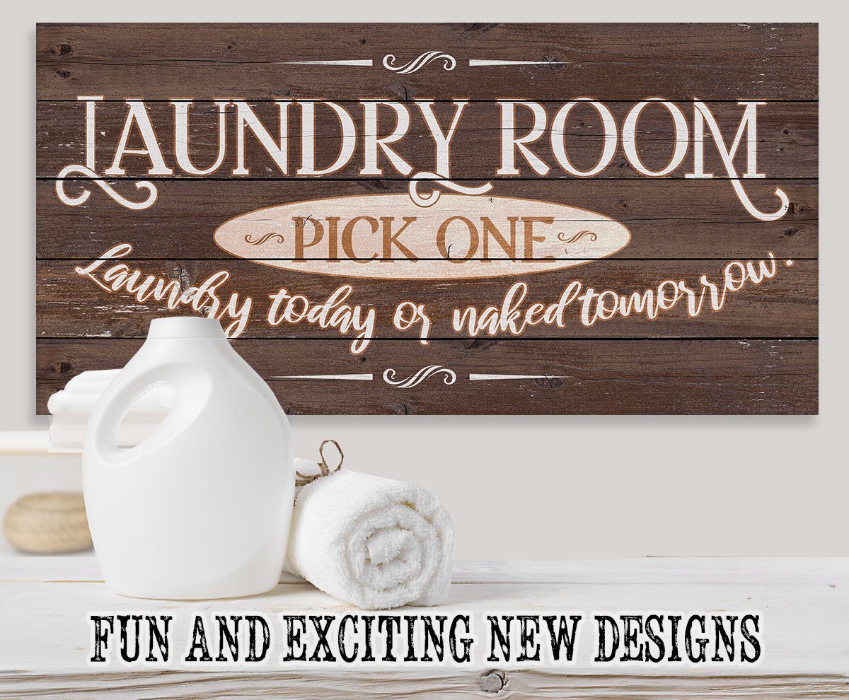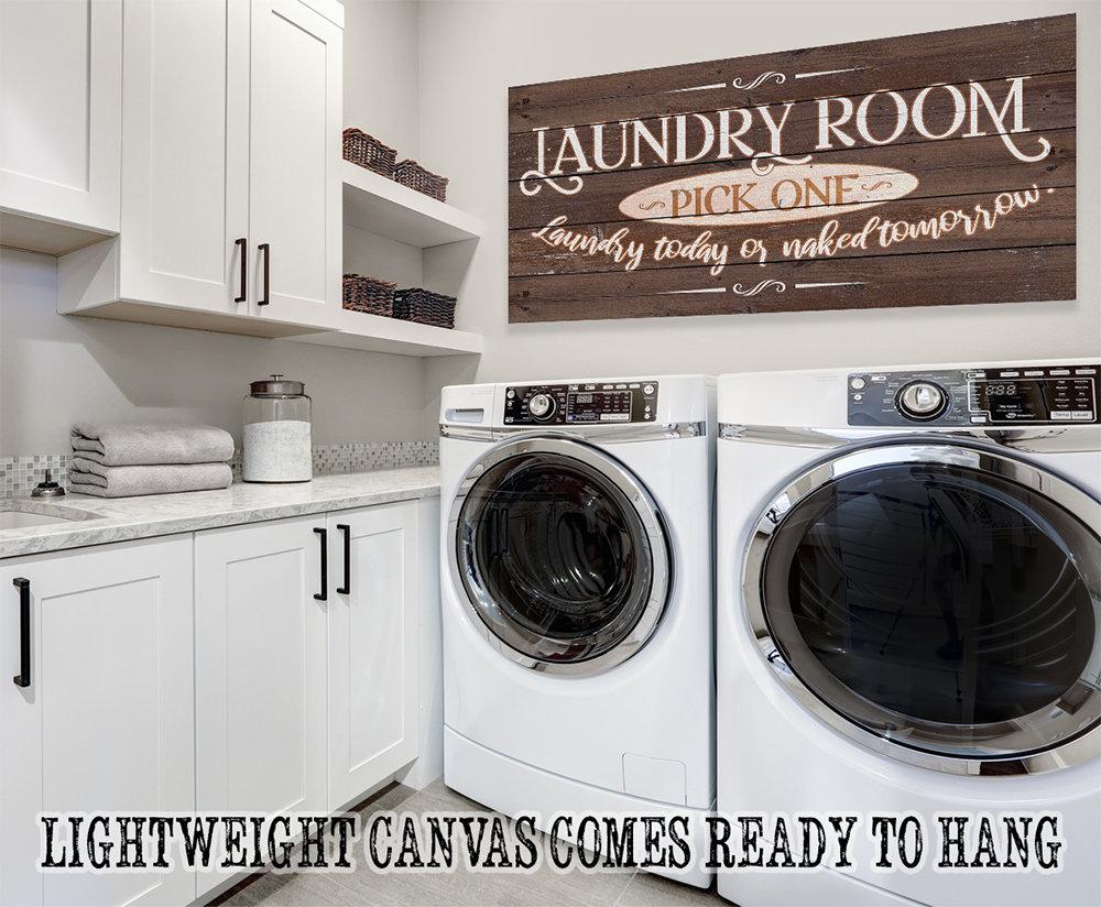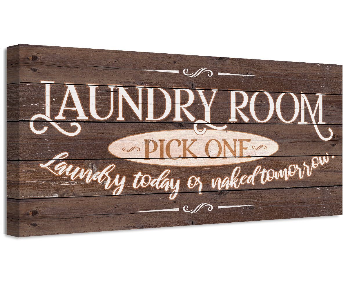 Laundry Pick One - Large Canvas (Not Printed on Wood) - Stretched on a Heavy Wood Frame - Ready to Hang-Laundry Room Decor-Housewarming GiftBring an elegant touch to any room! This large, vivid colored artwork adds the perfect focal point to any room.UPDATED DESIGNS - We created this design to be on trend with an elegant, timeless style that will greatly complement your homeMADE IN AMERICA - All our canvas artwork is hand-stretched by our employees in Tomball, Texas. We take pride in doing the work here and doing it right.REAL WOOD - We only use real pine 1.5" stretcher bars. We never use cheap particleboard stretcher bars like other sellers.PREMIUM CANVAS - So much of what goes into the final reproduction depends on the quality and consistency of the canvas. We only use acid-free, heavy canvas, which is not only durable but will not degrade over time. The surface has been specially prepared to accept and hold the inks, allowing them to radiate the brilliant color.PREMIUM INKS - The canvas is printed one at a time with the finest UV resistant inks using the latest high-resolution giclee printers. As the ink is laid on the matched and coated canvas, the result is an absolutely opaque, rich and brilliant reproduction. In addition, the UV properties of the ink ensure a fade-resistant, long-lasting beautiful image for decades.HAND STRETCHED - To ensure that the canvas remains taught, it is hand stretched around hardwood stretcher bars, fixed using no less than one staple per inch.THE ART - Now that you know how much effort goes into each piece, itâs time to do the most important stepâ¦selecting your favorite image... Click the Select Options button to start your order