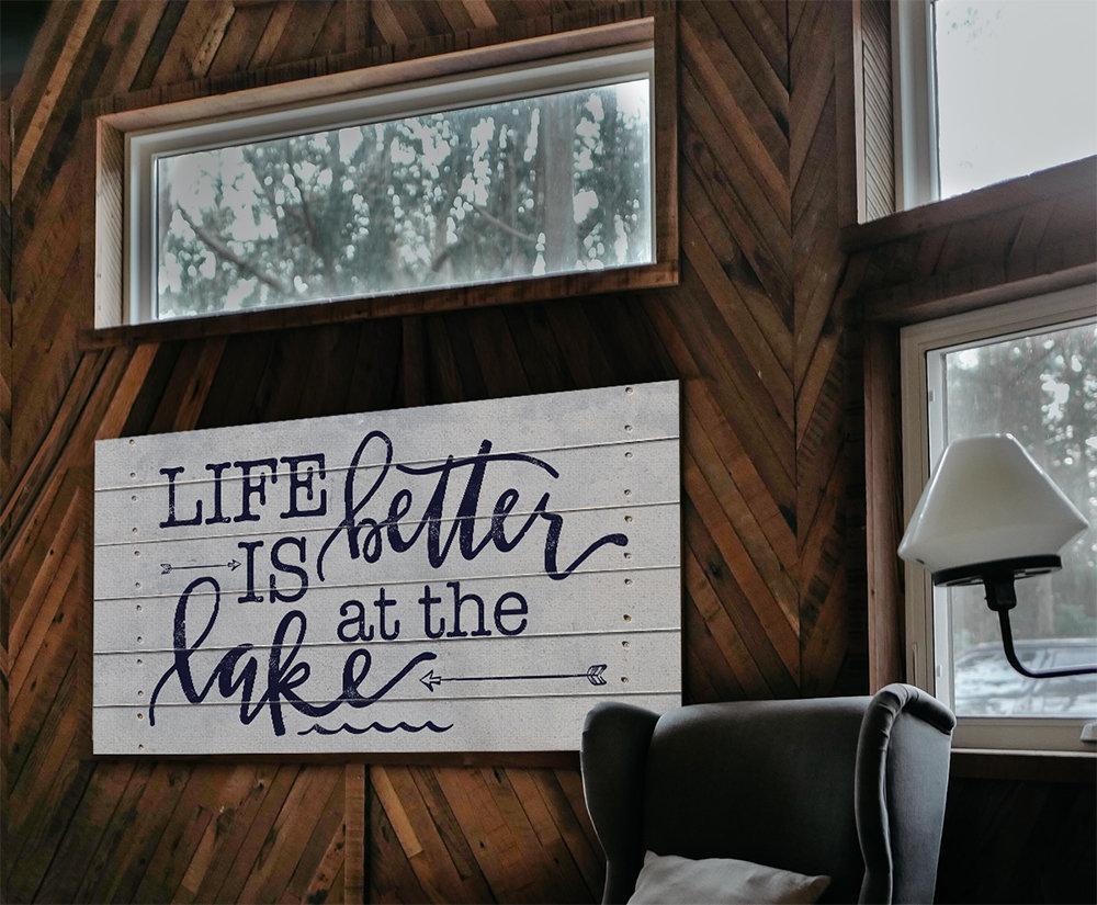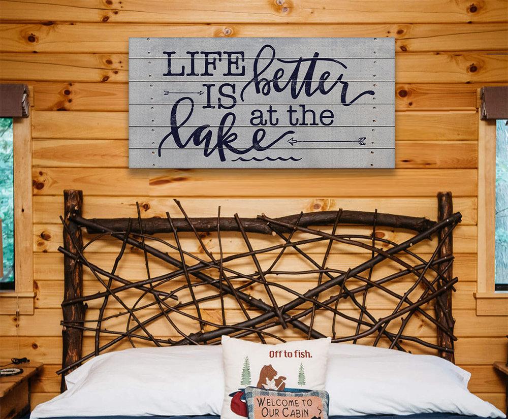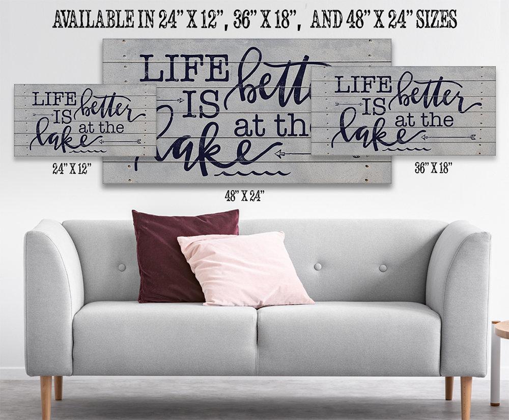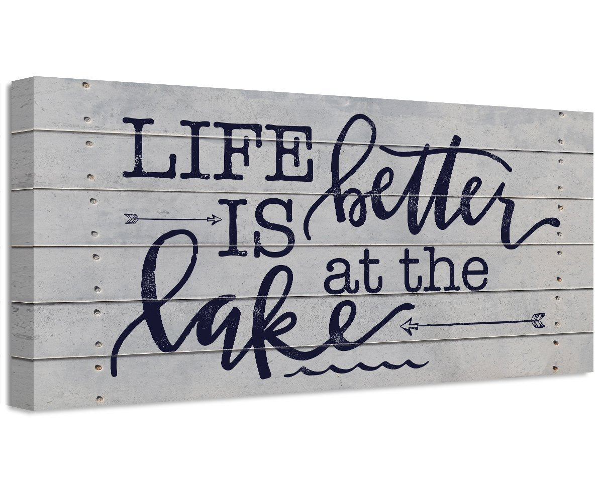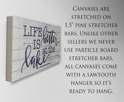 Life Is Better At The Lake-Large Canvas(Not Printed on Wood)-Stretched on Wood Frame-Couch or Headboard for Lake House-Housewarming Gift