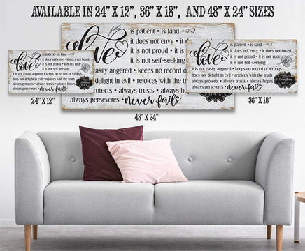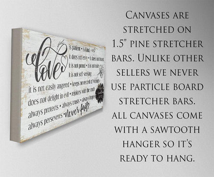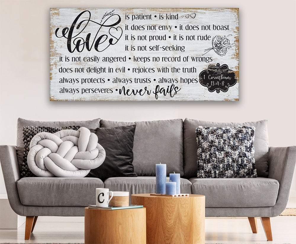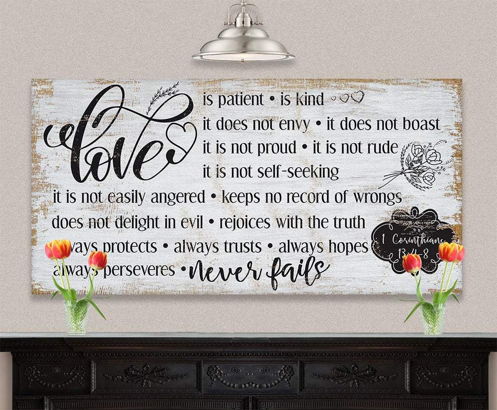 Love Is Patient - Large Canvas Wall Art (Not Printed on Wood) - Stretched on a Heavy Wood Frame - Perfect Above a Couch or Headboard - Makes a Great Housewarming and Wedding Gift