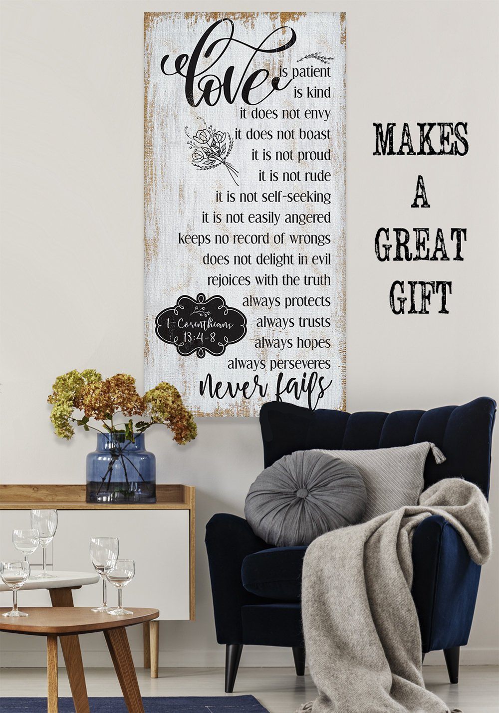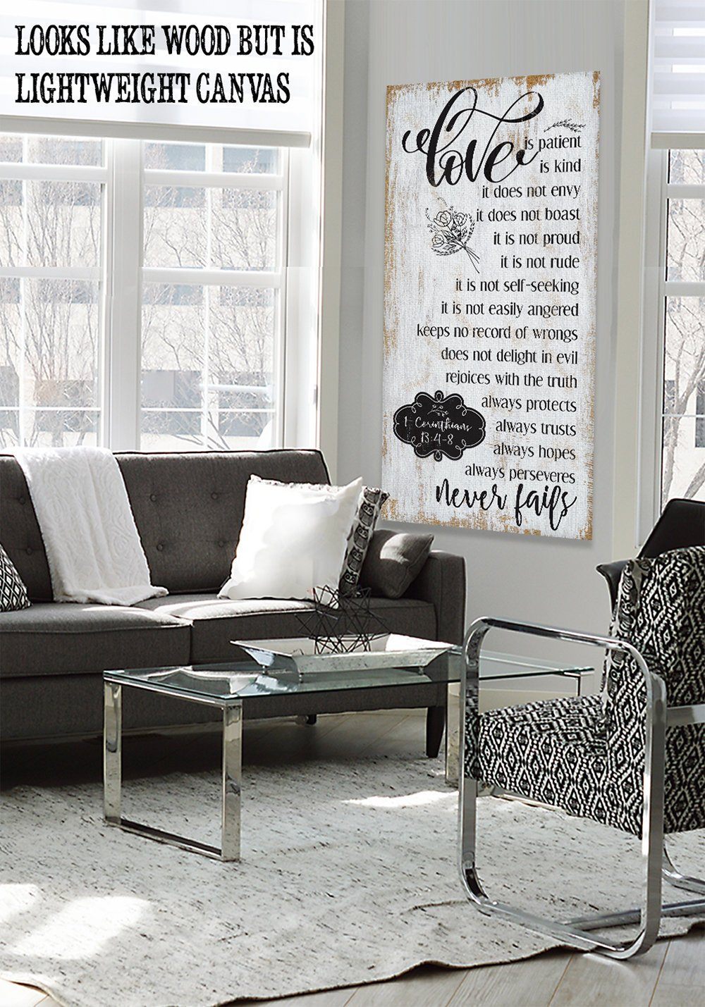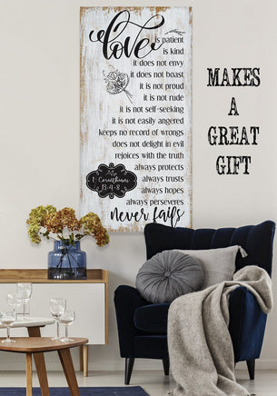 Love Is Patient - Large Canvas Wall Art (Not Printed on Wood) - Stretched on a Heavy Wood Frame - Perfect Above a Couch or Headboard - Makes a Great Housewarming and Wedding Gift