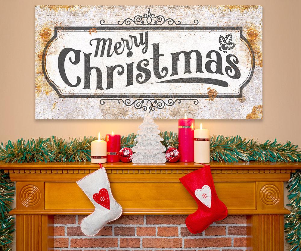 Merry Christmas - Large Canvas Wall Art (Not Printed on Wood) -Stretched on a Heavy Wood Frame - Ready to Hang - Makes a Great Christmas Gift and Decor