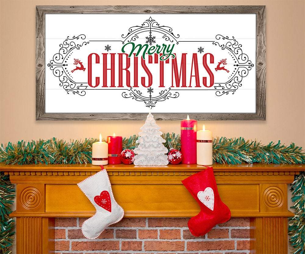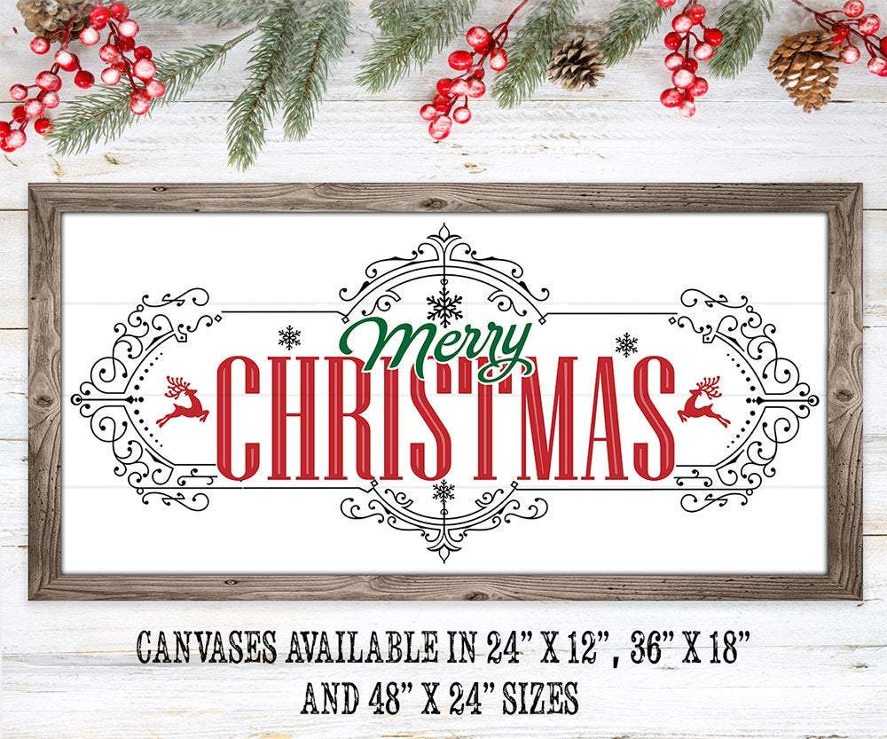 Merry Christmas - Large Canvas Wall Art (Not Printed on Wood) - Stretched on a Heavy Wood Frame - Ready to Hang - Makes a Great Christmas Gift and Decor Under $50