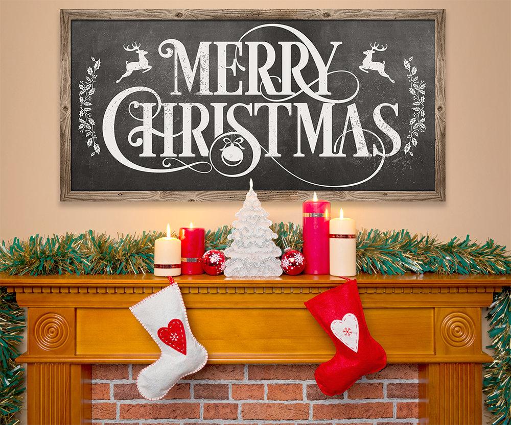 Merry Christmas-Large Canvas Art(Not Printed on Wood)Stretched on Wood-Ready to Hang-Christmas Gift