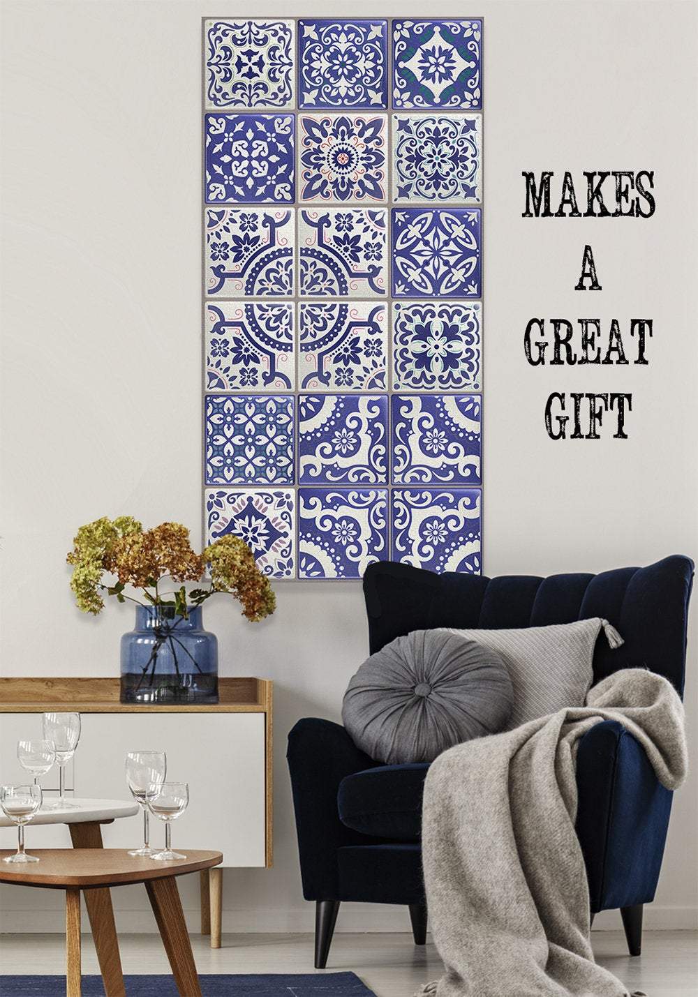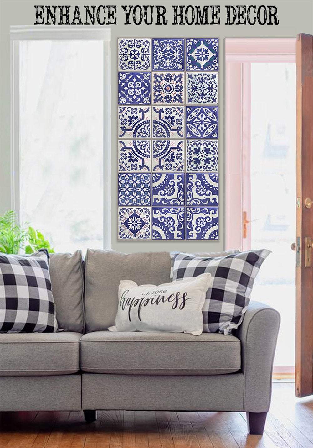 Mexican Tile Colorful-Large Canvas Wall Art(Not Printed on Wood) - Stretched on a Wood Frame
