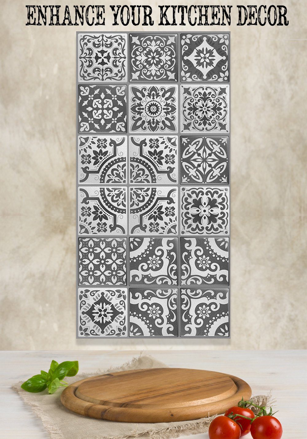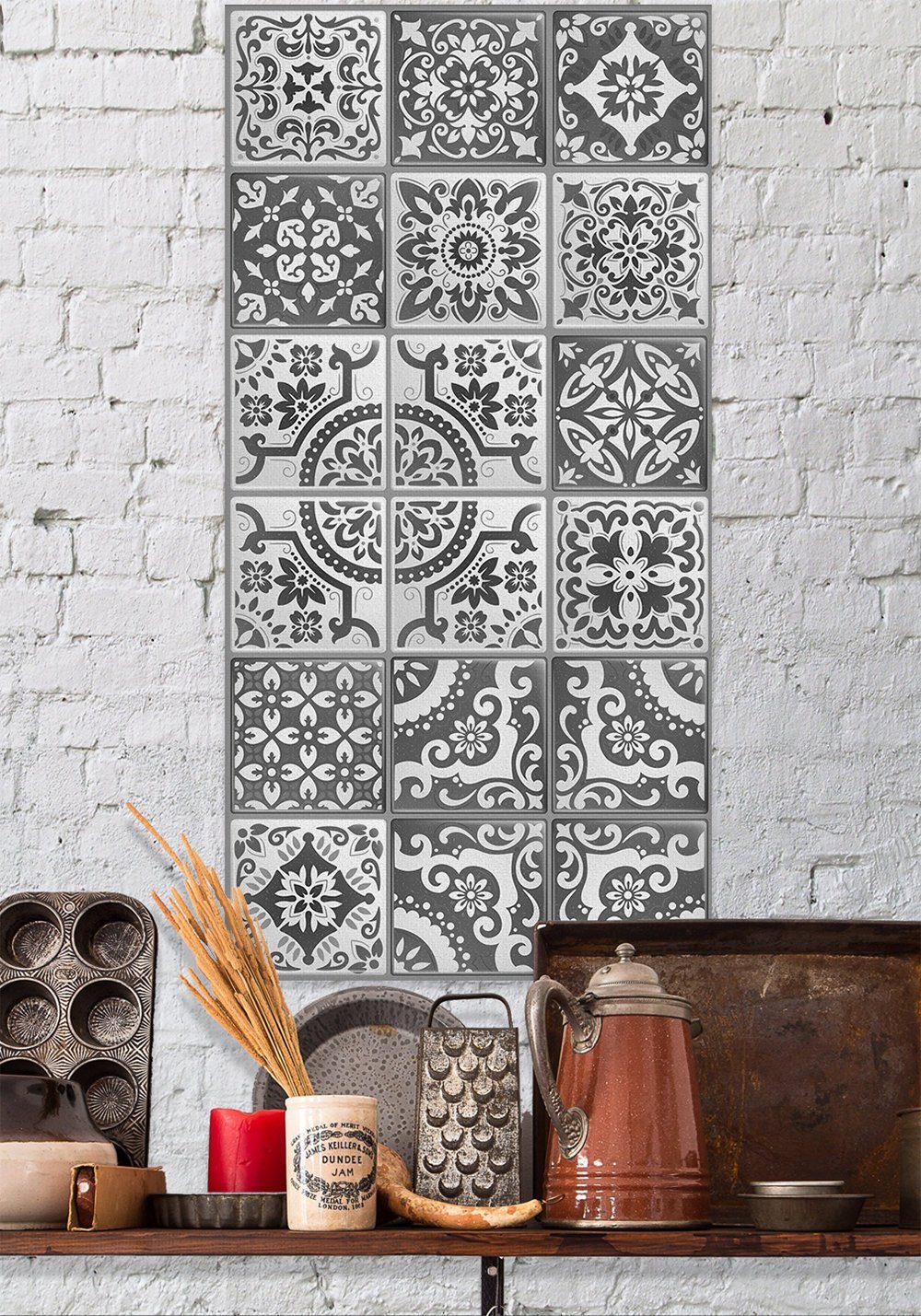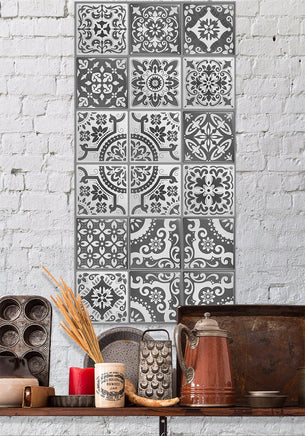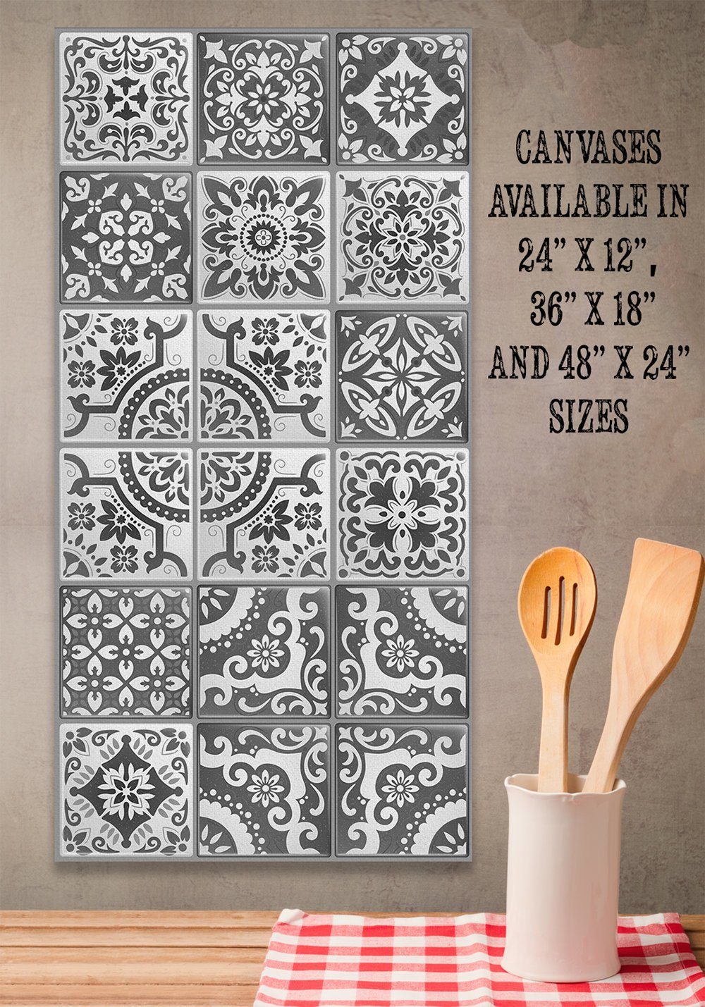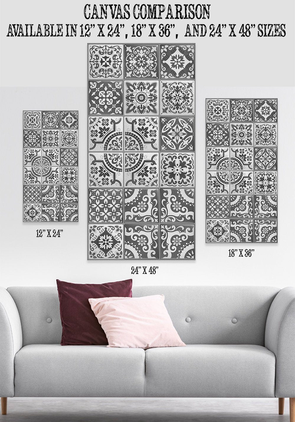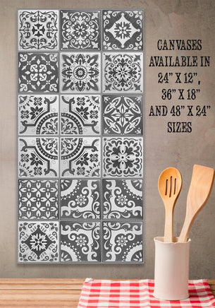 Mexican Tile Grey Shades-Large Canvas Wall Art(Not Printed on Wood) - Stretched on a Wood Frame