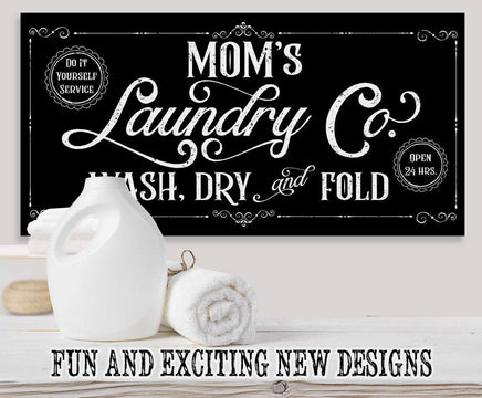 Mom's Laundry Co - Large Black and White Canvas Wall Art - Stretched on a Heavy Wood Frame - Laundry Room Decor - Great Housewarming Gift