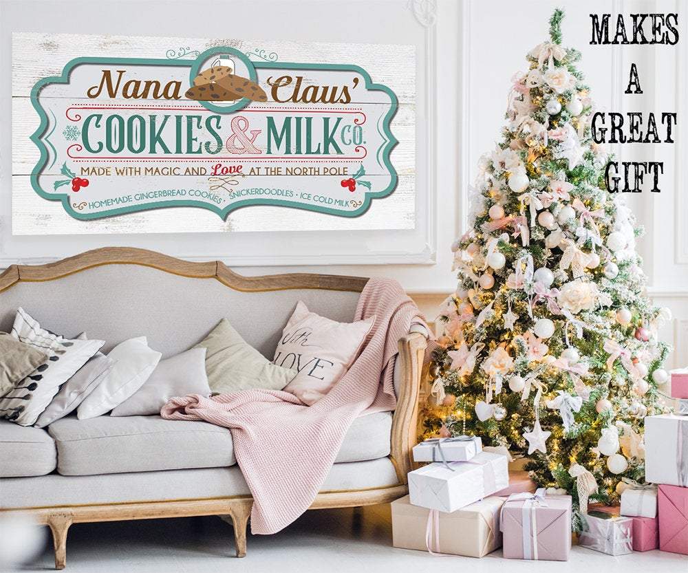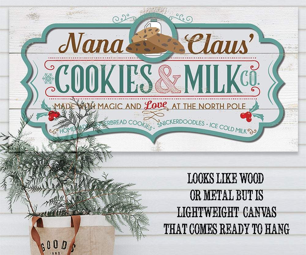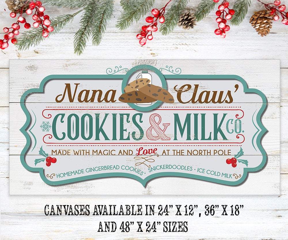 Nana Claus' Cookies & Milk Co-Large Canvas(Not Printed on Wood)Stretched on Wood-Ready to Hang Gift
