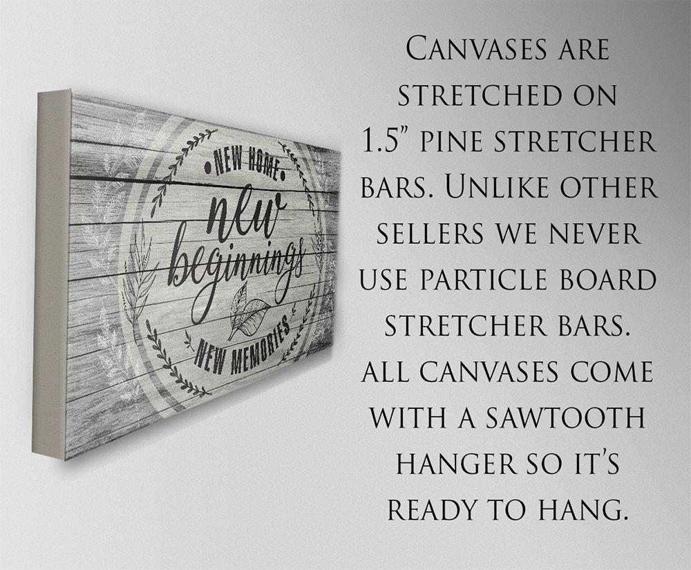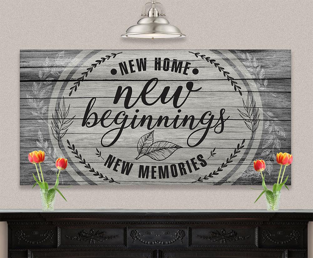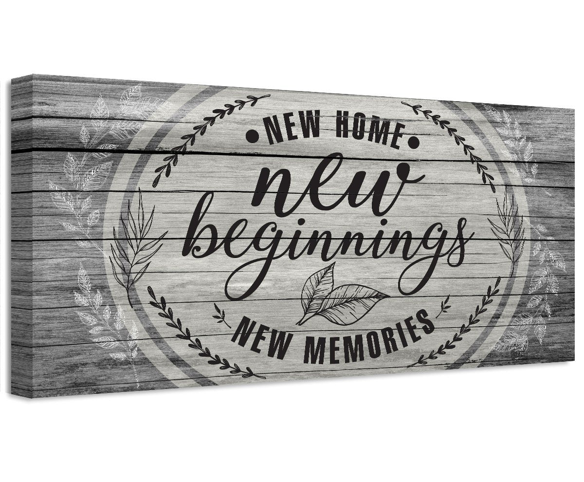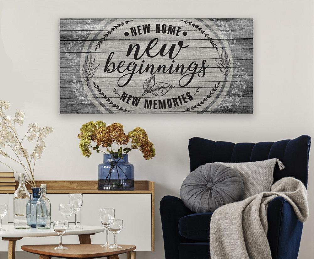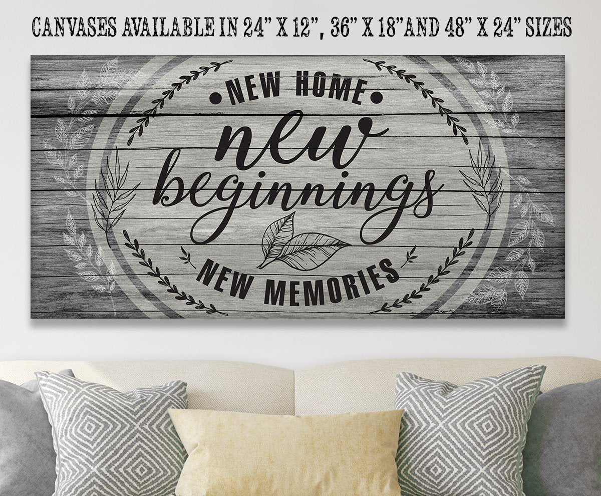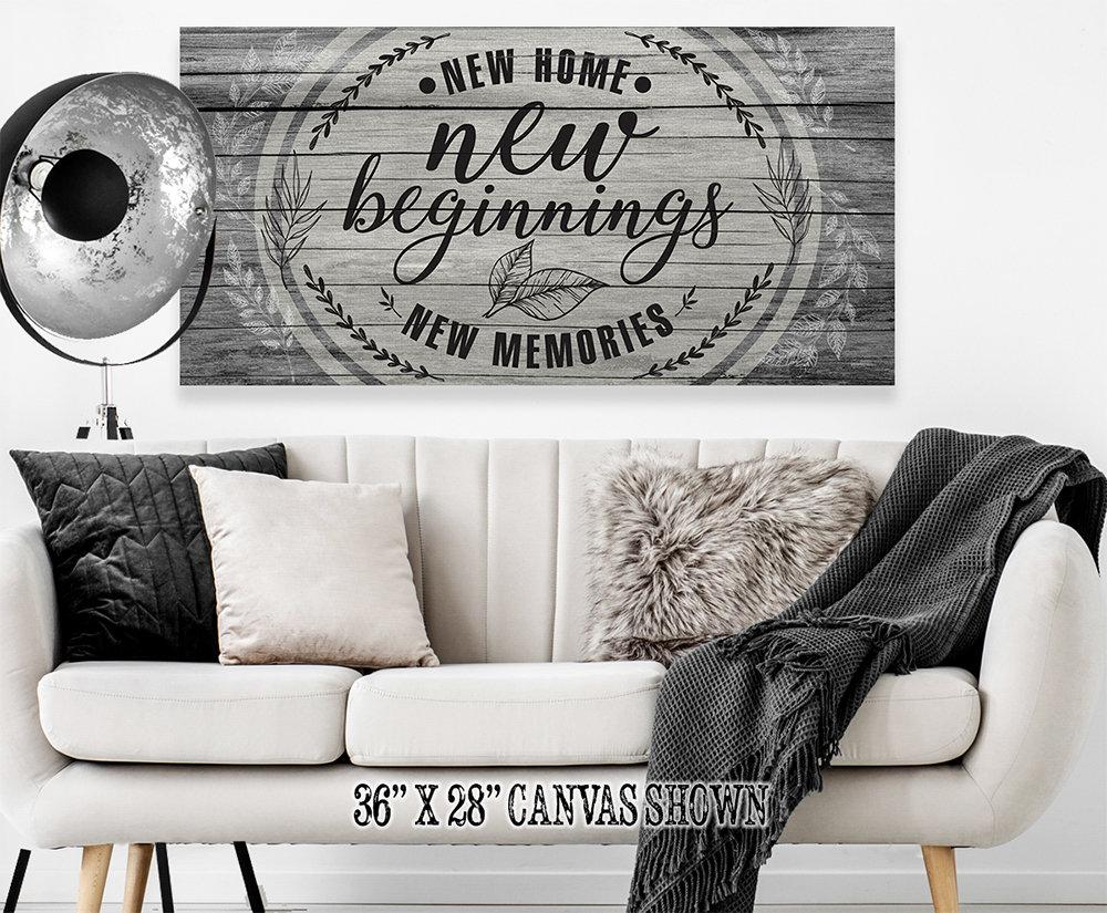 New Home New Beginning New Memories - Large Canvas Wall Art (Printed on Canvas, Not Wood)- Stretched on a Heavy Wood Frame - Perfect for Above a Couch - Makes a Great Housewarming Gift