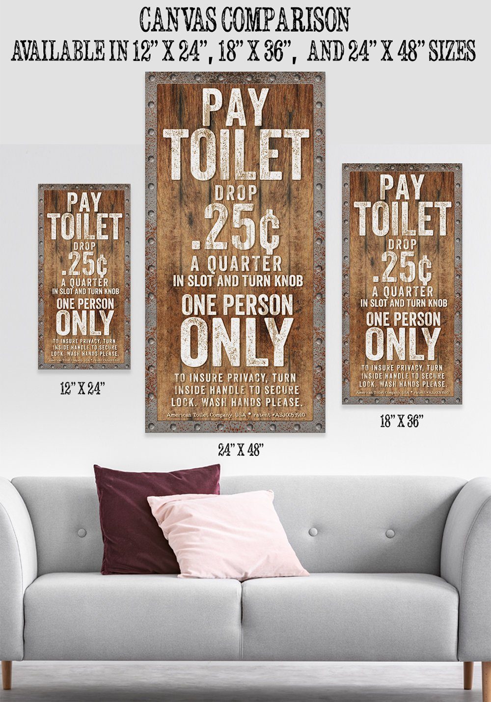 Pay Toilet-Large Canvas Wall Art(Not Printed on Wood) - Stretched on a Wood Frame