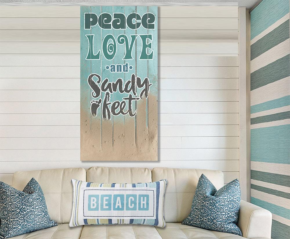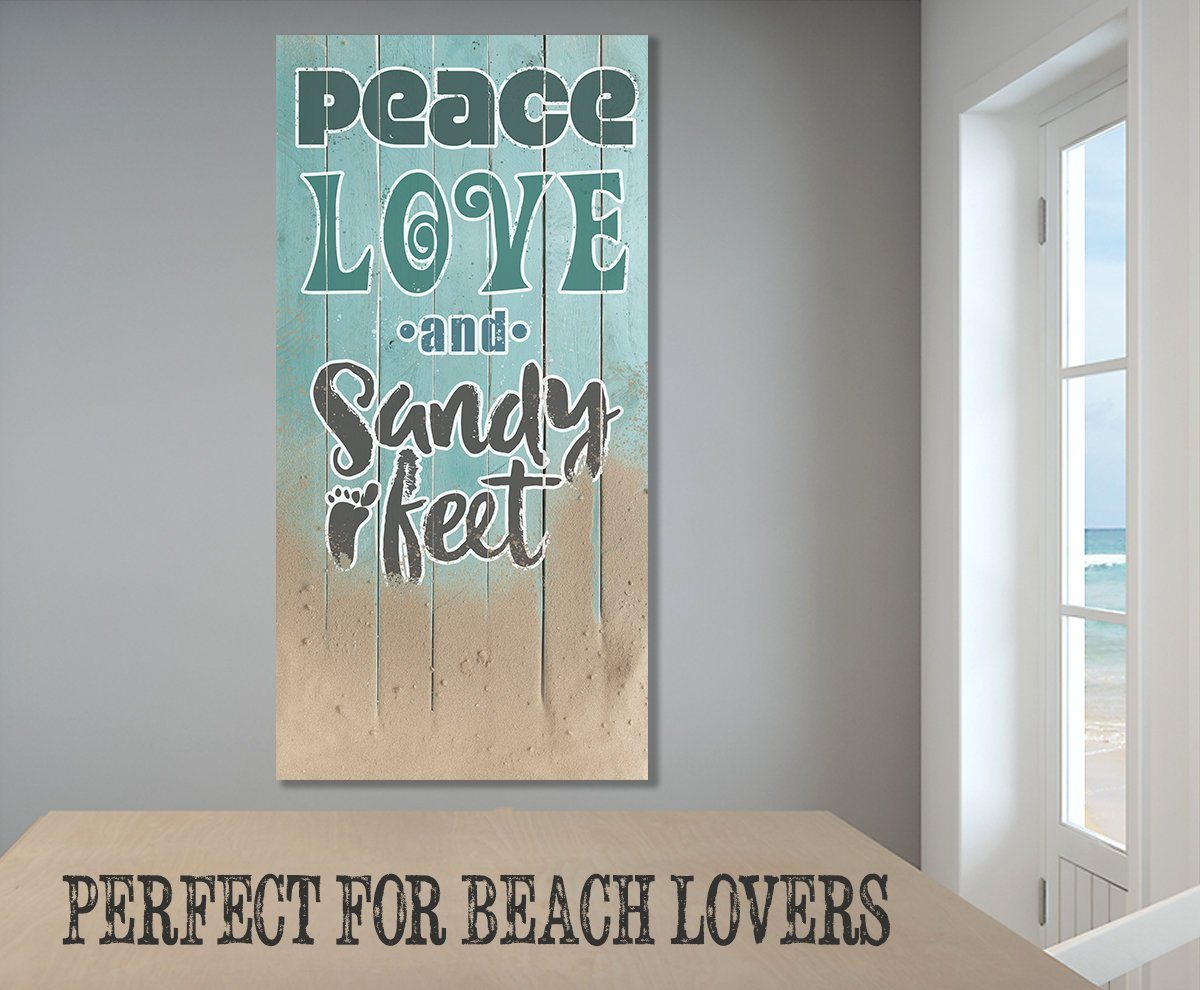 Peace Love Sandy Feet-Large Canvas Wall Art(Not Printed on Wood) - Stretched on a Wood Frame