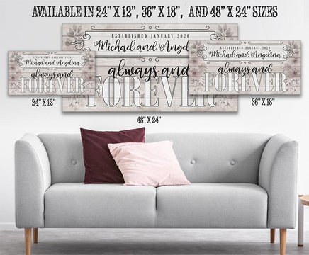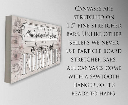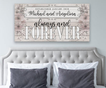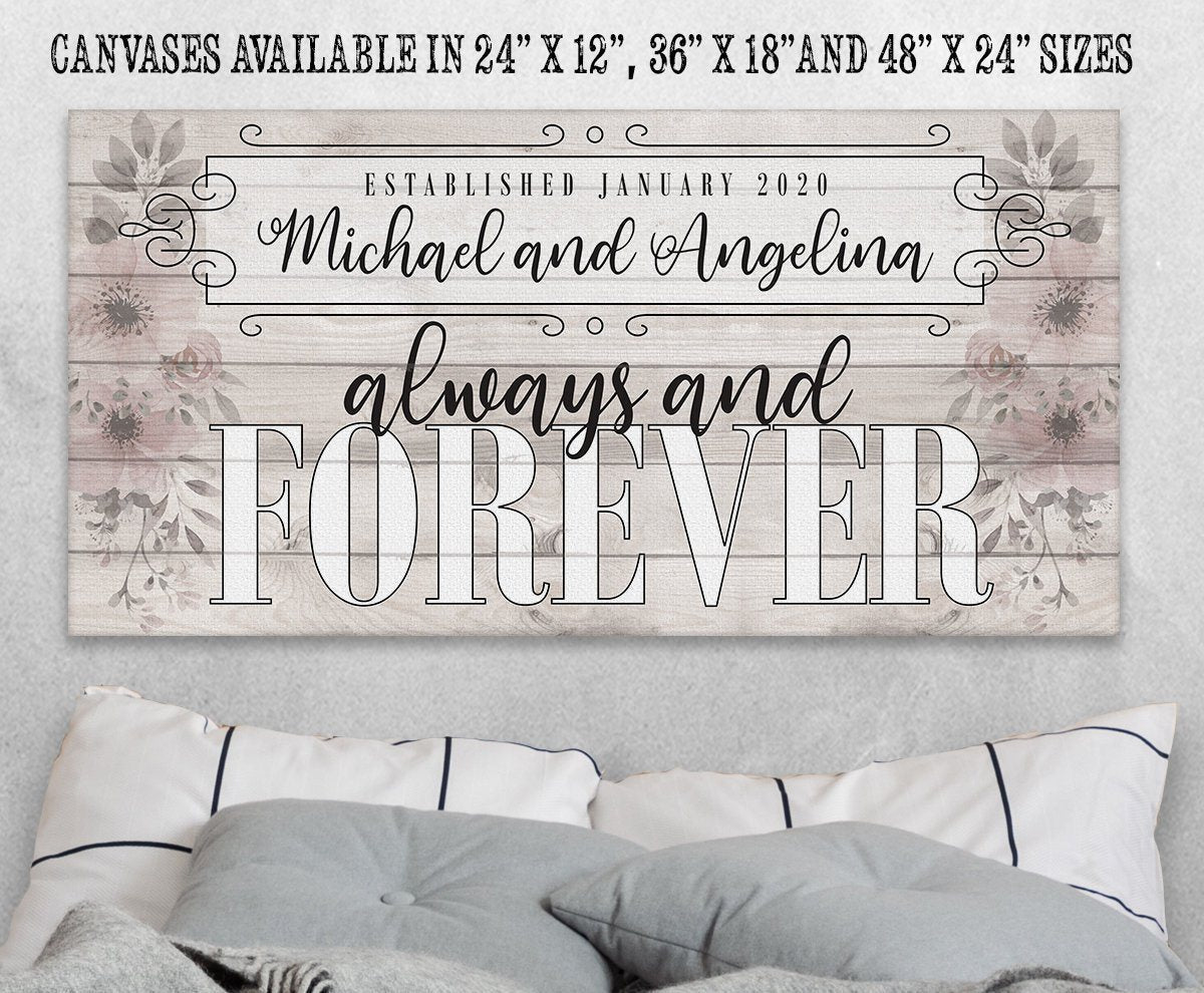Personalized - Always and Forever Large Canvas Wall Art - Stretched on a Heavy Wood Frame - Perfect for Above a Couch or Headboard - Makes a Great Housewarming Gift