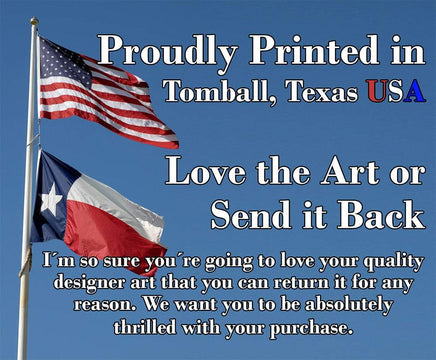 MADE IN AMERICA - All our canvas artwork is hand-stretched by our employees in Tomball, Texas. We take pride in doing the work here and doing it right. REAL WOOD - We only use real pine 1.5" stretcher bars. We never use cheap particleboard stretcher bars like other sellers.