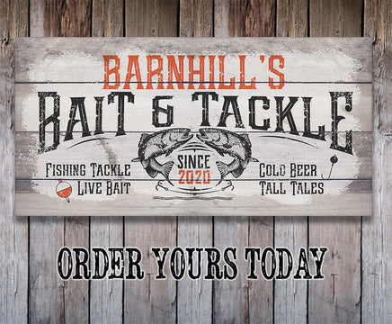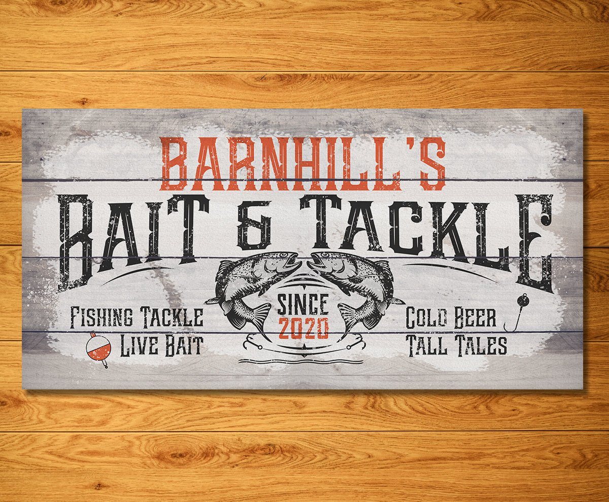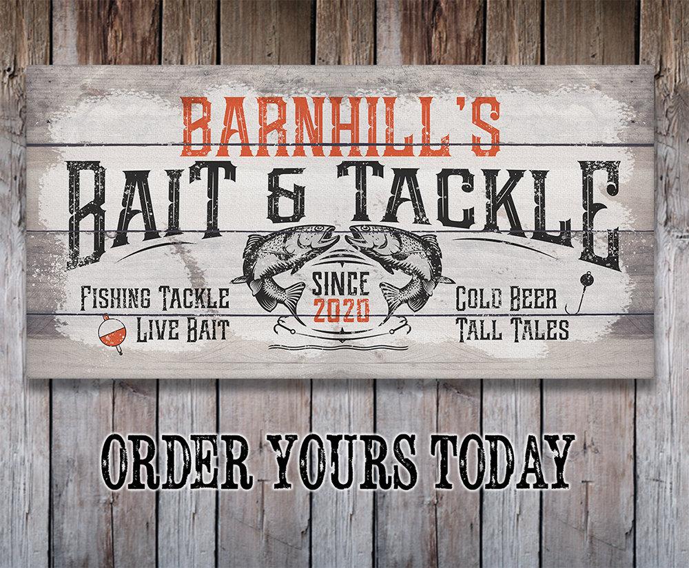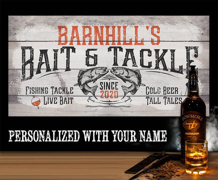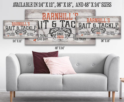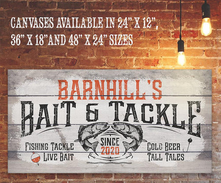 Personalized - Bait & Tackle - Large Canvas (Not Printed on Wood) - Stretched on a Wood-Bait Shop, Cabin, Lake House Decor-Father's Day Gift
