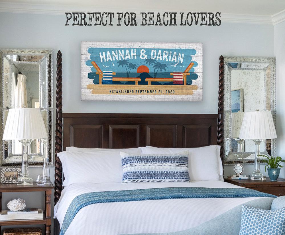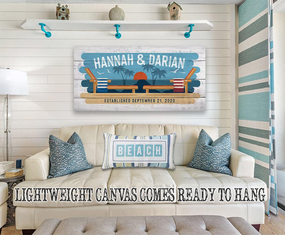 Personalized-Beach Chairs-Large Canvas Wall Art(Not Printed on Wood) - Stretched on a Wood Frame