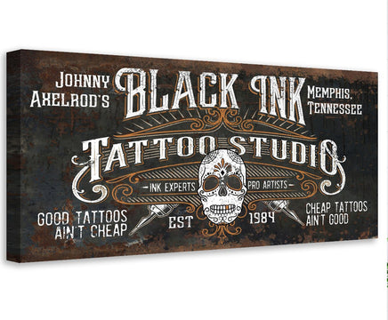 Personalized-Black Ink Tattoo-Large Canvas Wall Art(Not Printed on Wood) - Stretched on a Wood Frame