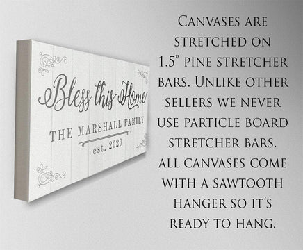 Personalized-Bless This Home-Large Canvas(Not Printed on Wood)-Stretched on Wood-Couch and Living Room Decor - Housewarming and Wedding Gift
