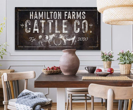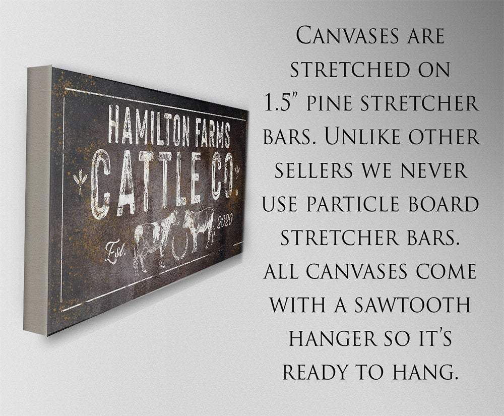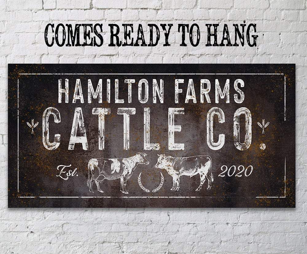 Personalized-Cattle Co-Large Canvas (Not Printed on Metal) -Stretched on a Wood Frame - Living Room Decor - Housewarming Gift to Farm Owners