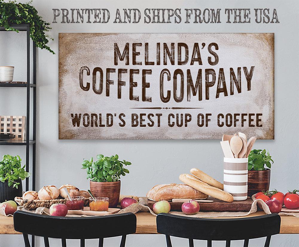 Personalized-Coffee Co-Large Canvas Wall Art(Not Printed on Wood) - Stretched on a Wood Frame