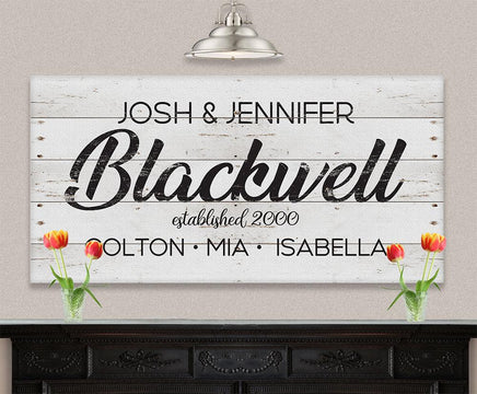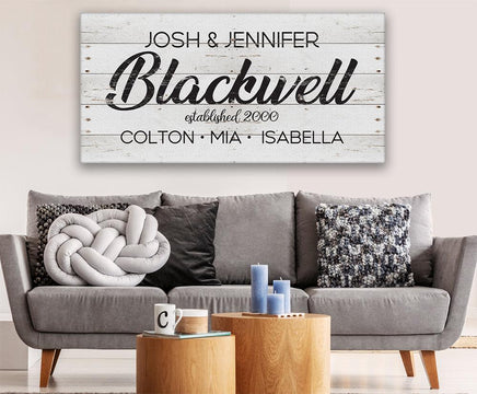 Personalized - Family Name - Large Canvas Wall Art (Not Printed on Wood) - Stretched on a Wood Frame - Living Room Decor - Housewarming Gift