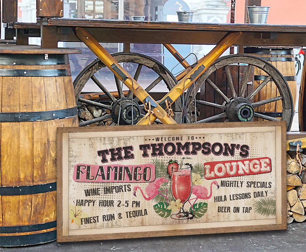 Personalized-Flamingo Lounge-Large Canvas Wall Art(Not Printed on Wood) - Stretched on a Wood Frame