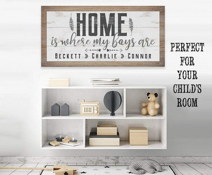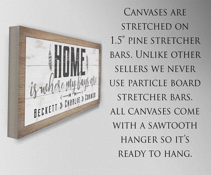 Personalized-Home Is Where My Boys Are-Large Canvas Wall Art(Not Printed on Wood) - Stretched on a Wood Frame
