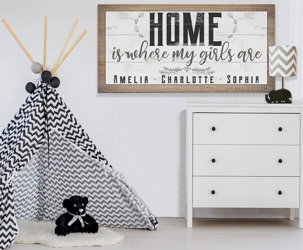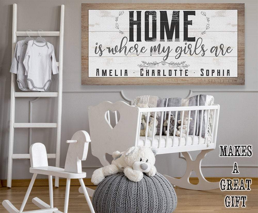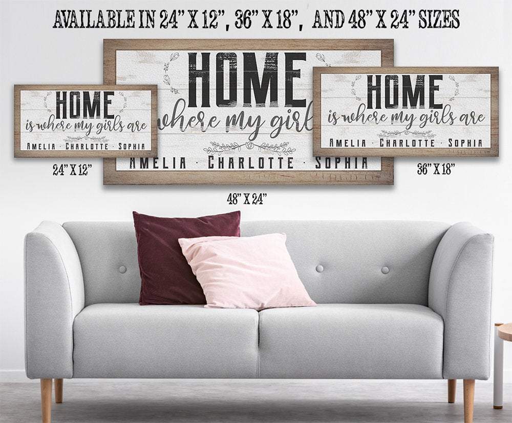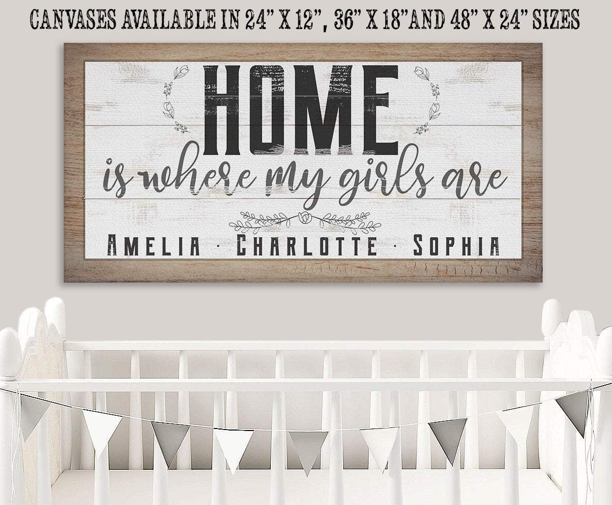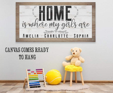 Personalized-Home Is Where My Girls Are-Large Canvas Wall Art(Not Printed on Wood) - Stretched on a Wood Frame