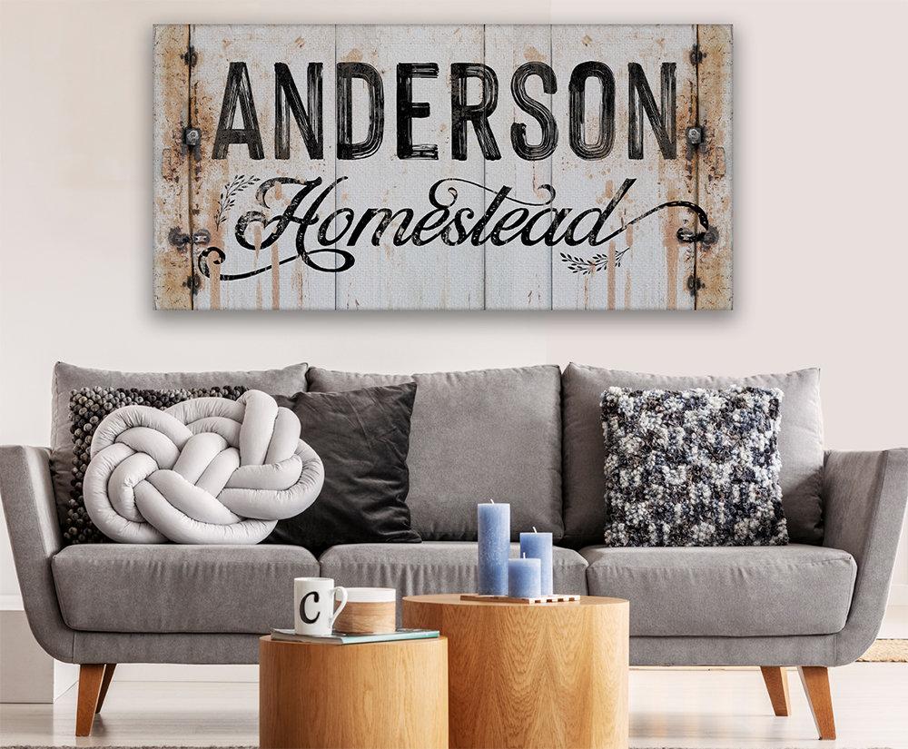 Personalized - Homestead -Large Canvas Art (Not Printed on Wood)-Stretched on a Wood Frame-Above a Couch Living Room Decor-Housewarming Gift