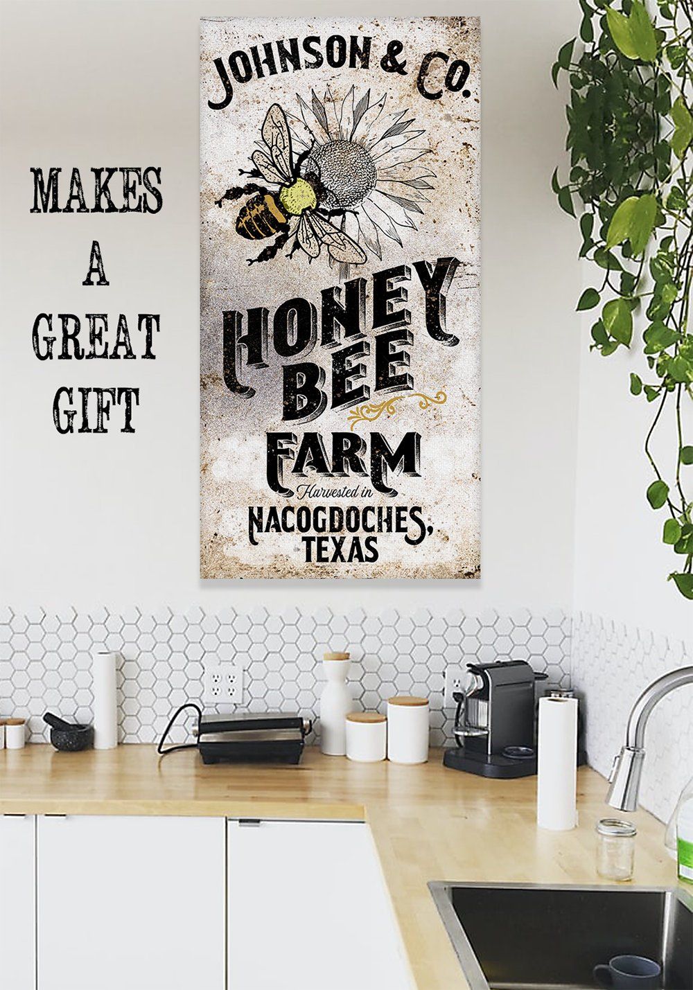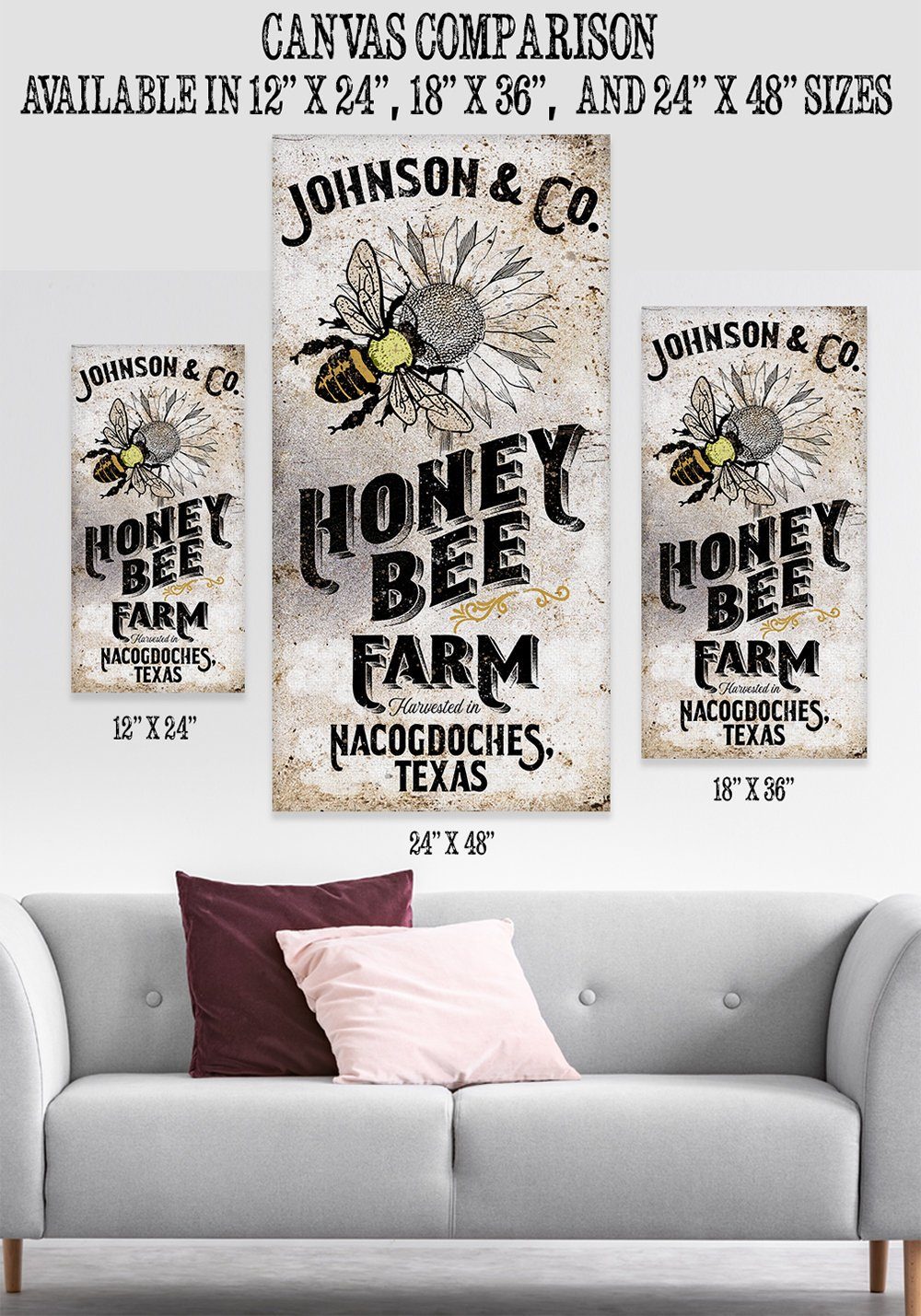Personalized-Honey Bee Farm-Large Canvas Wall Art(Not Printed on Wood) - Stretched on a Wood Frame