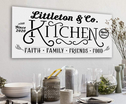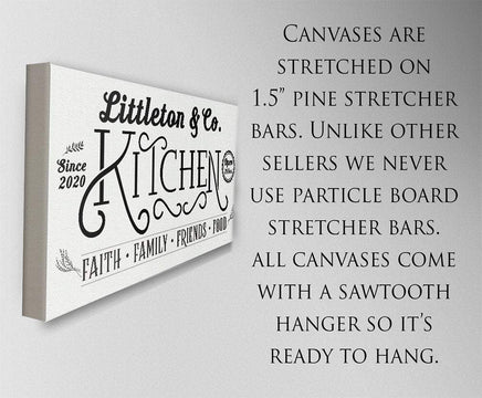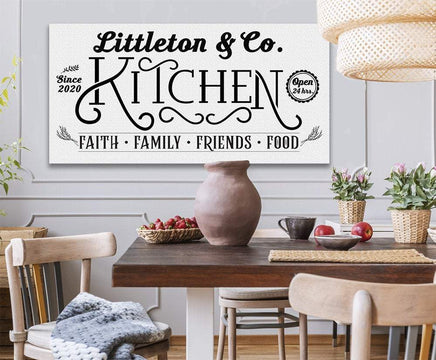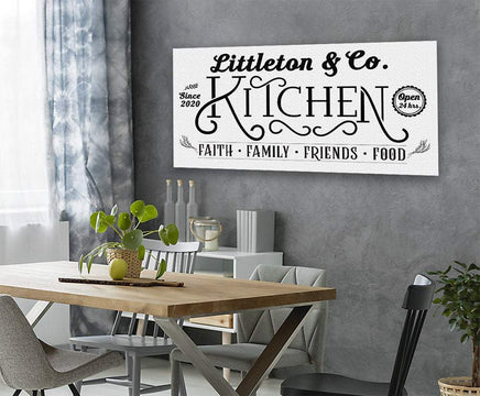 Personalized - Kitchen Faith Family - Large Black and White Canvas - Stretched on Wood Frame - Farm House Decor-Gift to Farm Owners