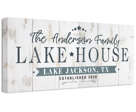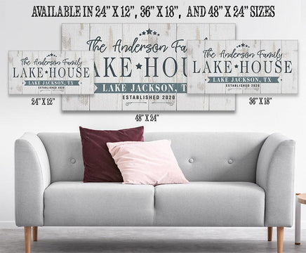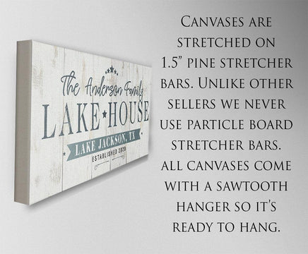 Personalized - Lake House Large Canvas Wall Art (Not Printed on Wood) -Stretched on Wood-Perfect Above a Couch-Housewarming Gift Cabin Decor