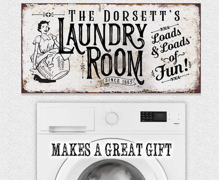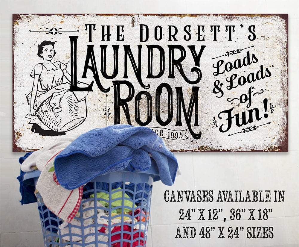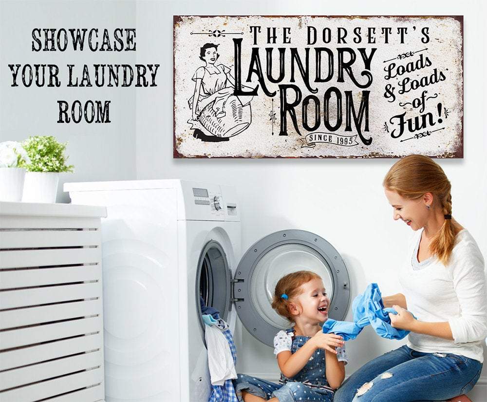 Personalized-Laundry Loads of Fun-Large Canvas Wall Art(Not Printed on Wood) - Stretched on a Wood Frame