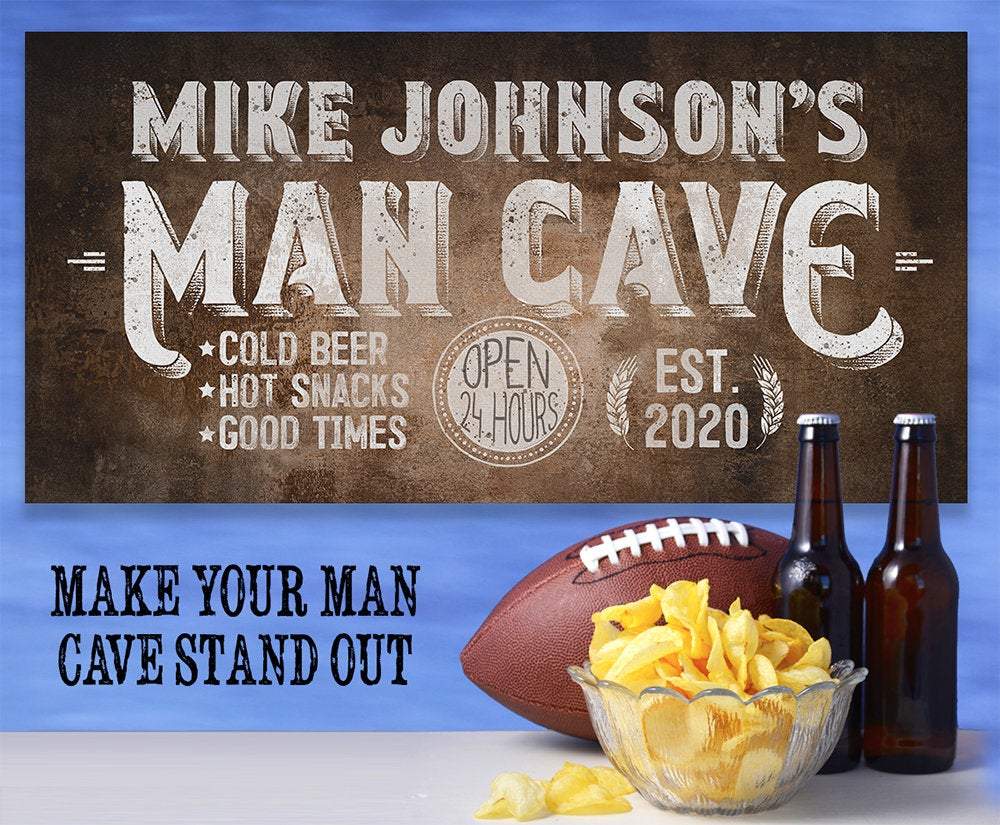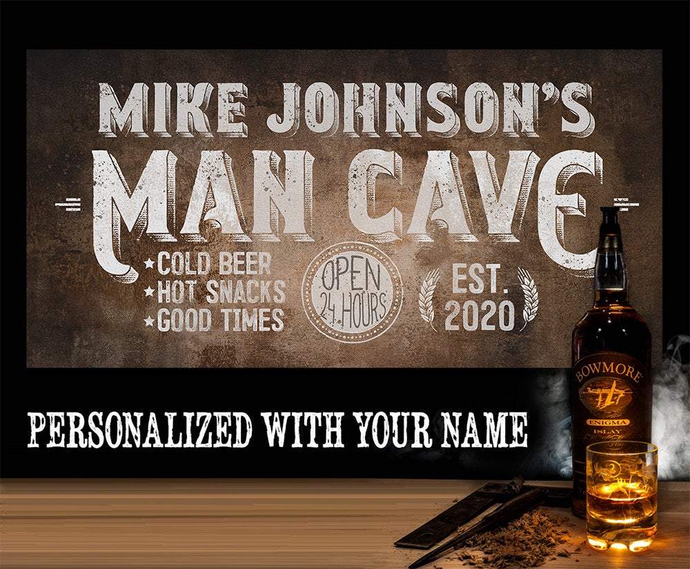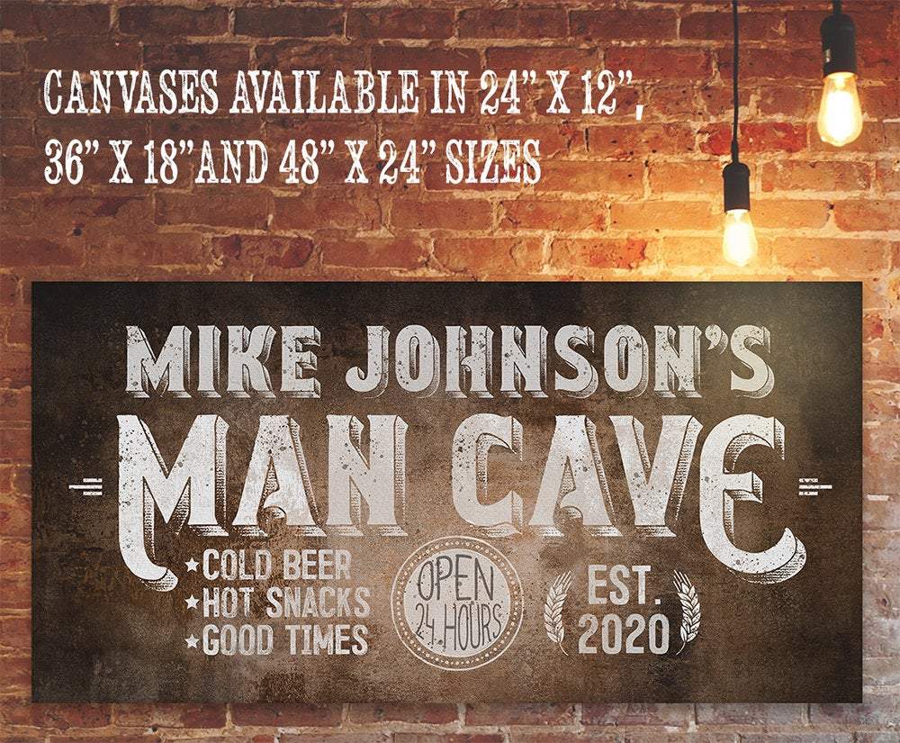 Personalized - Man Cave - Large Canvas Wall Art (Not Printed on Metal) - Stretched on a Heavy Wood Frame - Perfect Above a Couch Man Cave Decor - Makes a Great Housewarming Gift