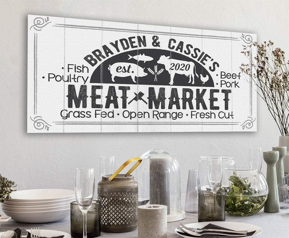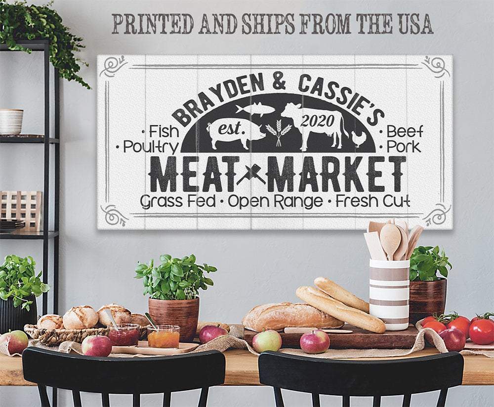 Personalized-Meat Market-Large Canvas Wall Art(Not Printed on Wood) - Stretched on a Wood Frame
