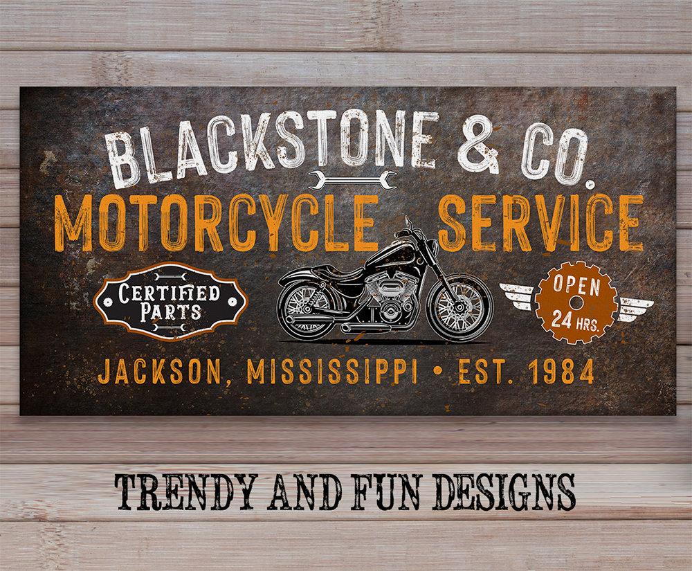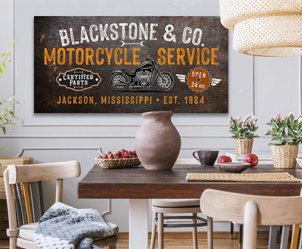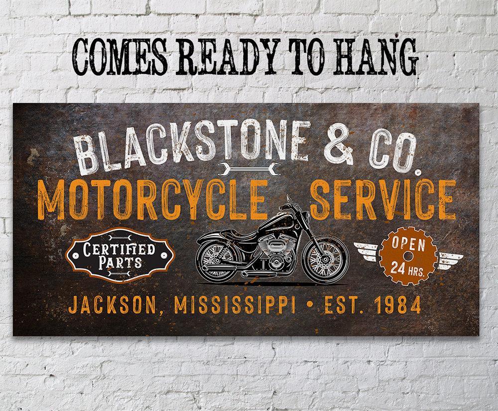 Personalized-Motorcycle Service-Large Canvas (Not Printed on Metal) -Stretched on Wood - Perfect Motorcycle Garage Decor - Housewarming Gift
