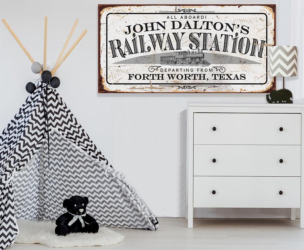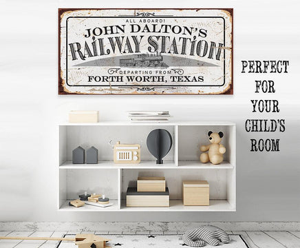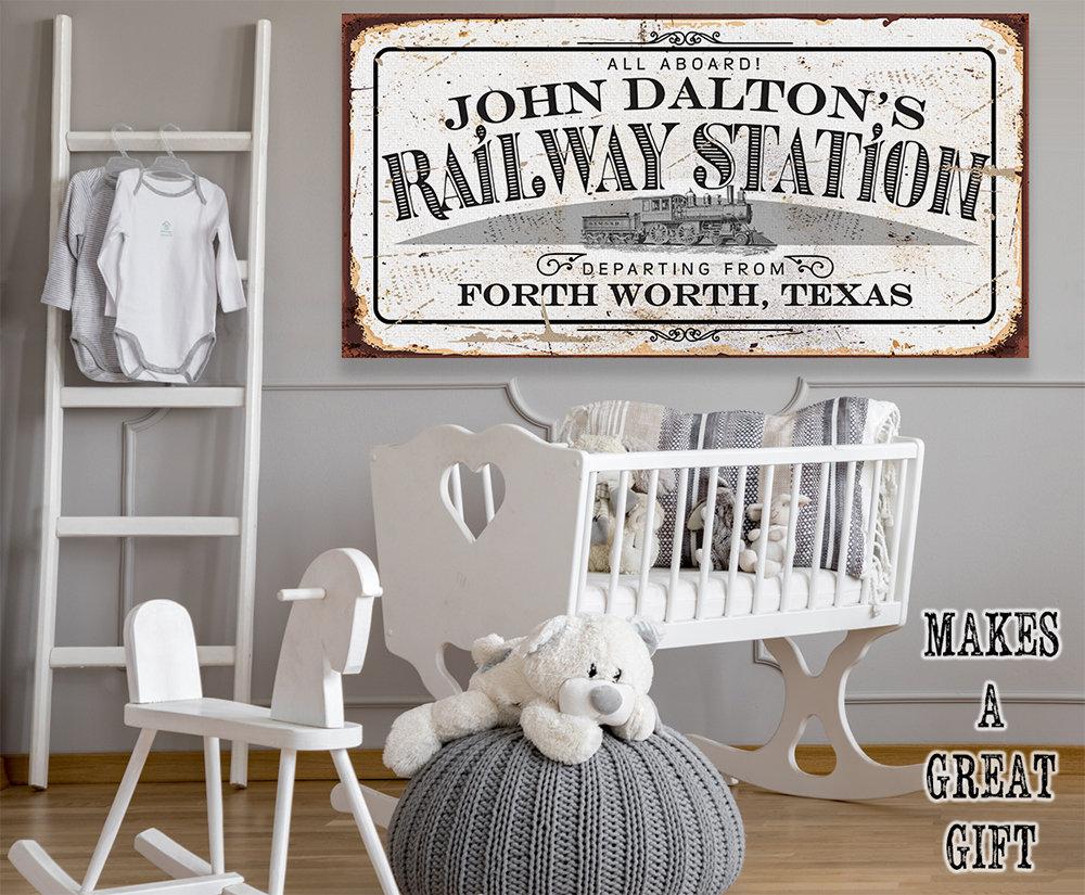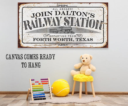 Personalized-Railway Station-Large Canvas Wall Art(Not Printed on Wood) - Stretched on a Wood Frame