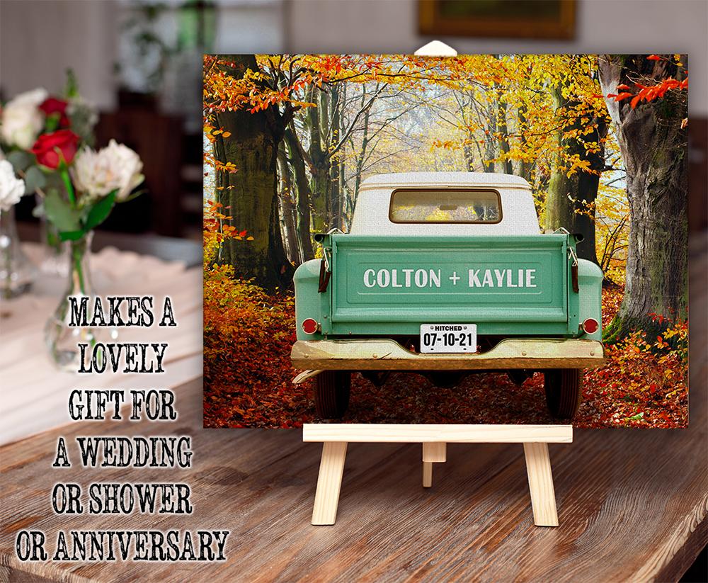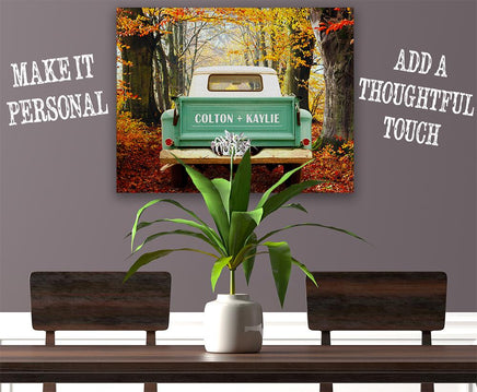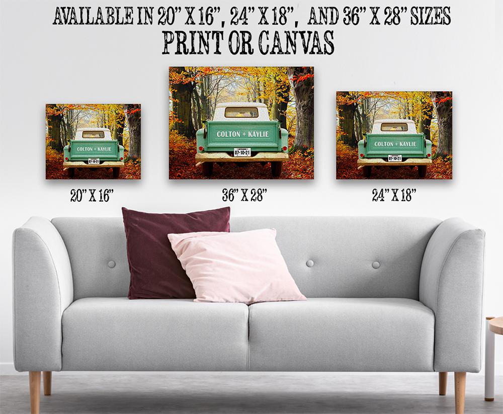 MAKES A GREAT GIFT- Remember that special day forever with one of our "Side By Side" Personalized Pickup Truck Canvas Art! This print features the names of the happy couple, as well as their wedding date to memorialize it for years to come. Since it is personalized, it will be created as soon as you order it by one of our artists and shipped directly to you or the lucky recipient. My huge portfolio makes it easy to find the perfect gift for the people you care about. Friends love to get them for Birthdays, Christmas, Hanukkah, weddings, anniversaries, retirement, graduation, Father's Day, Mother's Day, Valentine's Day, or house warming. Makes a great gift for your friends, husband, wife, son daughter mom, dad, co-workers, grandfather, grandmother, aunt uncle, cousin, spouse, or boss