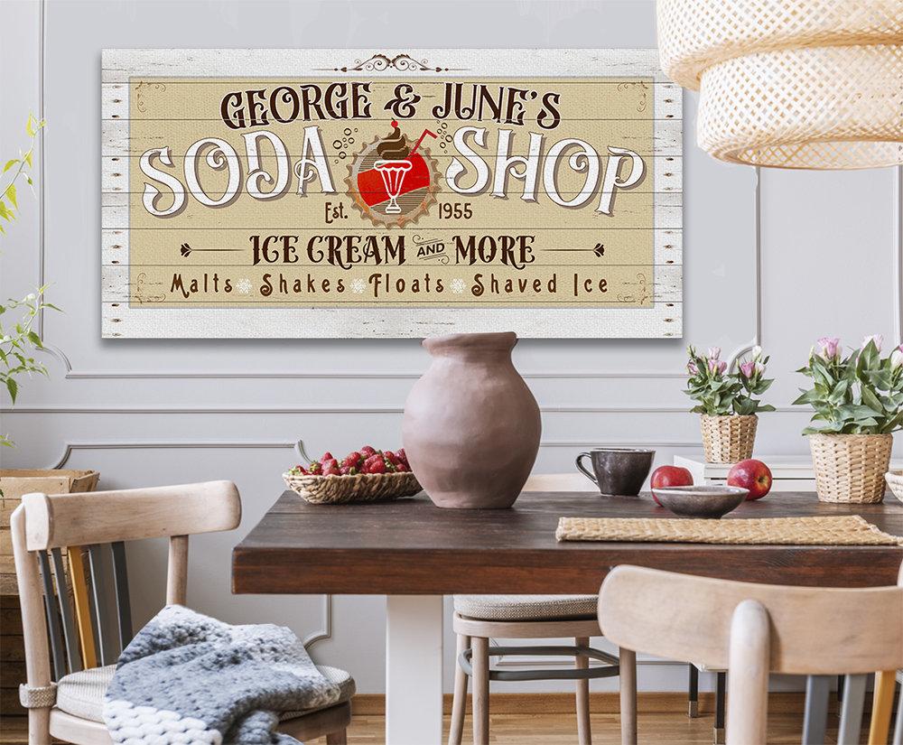 Personalized-Soda Shop-Large Canvas Wall Art(Not Printed on Wood) - Stretched on a Wood Frame