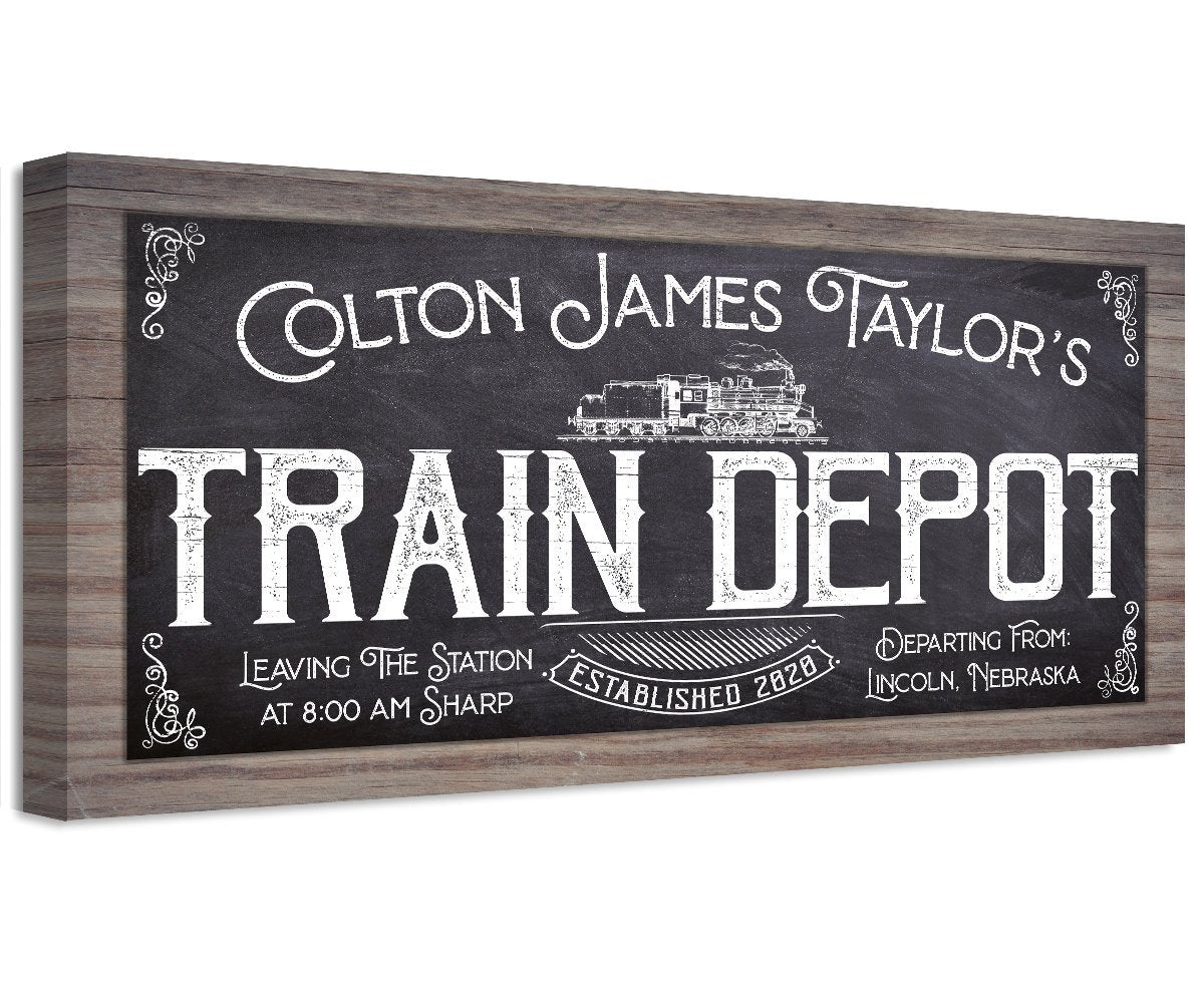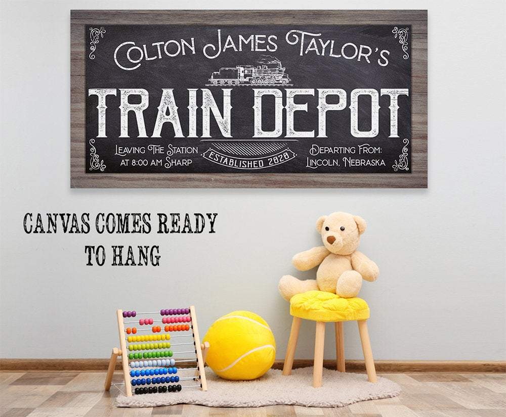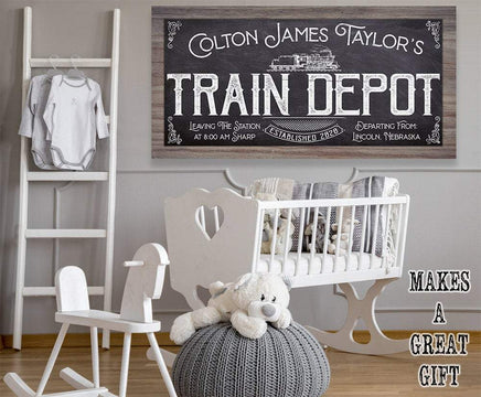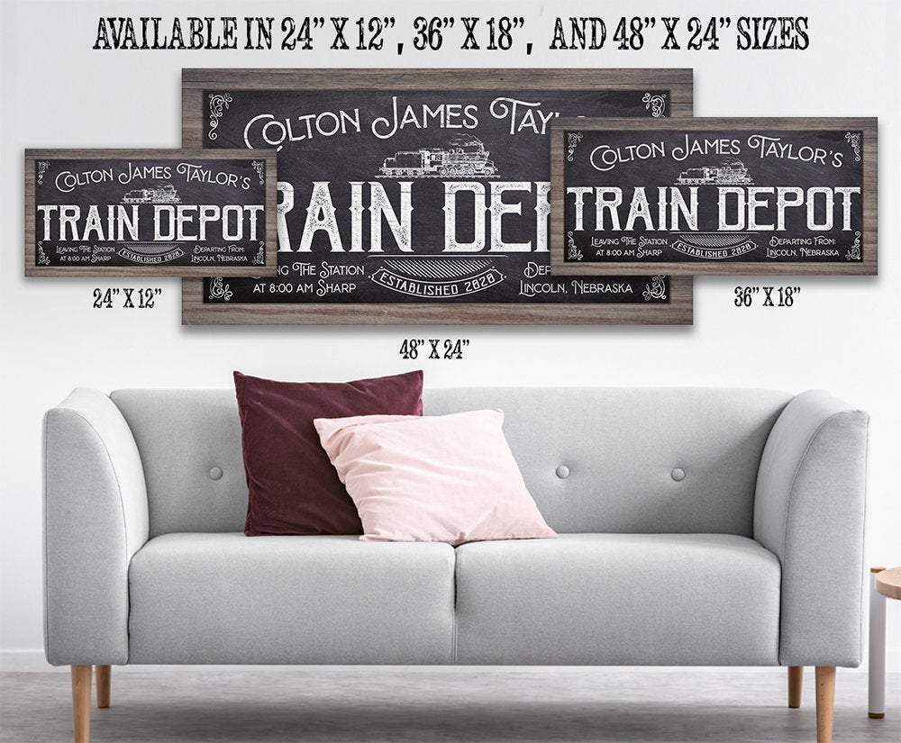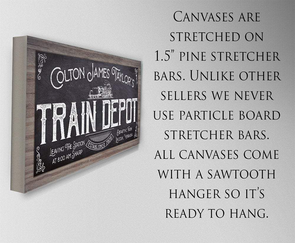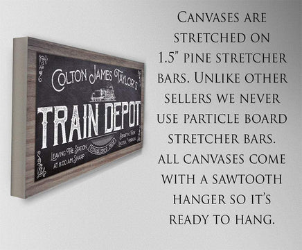 Personalized-Train Depot-Large Canvas Wall Art(Not Printed on Wood) - Stretched on a Wood Frame